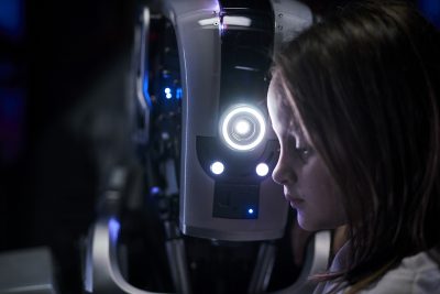 Um aviso: a prévia conta a reviravolta e boa parte da história. Ela mostra como um robô (dublado por Rose Byrne, de “X-Men: Apocalipse”) cria uma menina, do feto à adolescência (ou até virar Clara Rugaard, a Julieta de “Still Star-Crossed”), num bunker subterrâneo após a superfície se tornar desabitada por uma catástrofe. Ambos desenvolvem laços afetivos, a ponto de se referirem como mãe e filha. Até que uma mulher adulta (vivida por Hilary Swank, a “Menina de Ouro”) aparece à porta do abrigo e insiste que o robô é uma ameaça e tudo o que a menina aprendeu é mentira. Robôs exterminaram a humanidade.