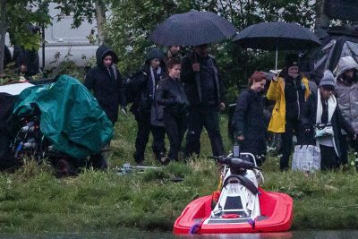 Novas fotos das filmagens de “Viúva Negra” surgiram nas redes sociais, registrando os bastidores de duas cenas da produção da Marvel. Numa delas, Scarlett Johansson aparece no alto de uma montanha, onde se encontra com um helicóptero. Em outra, a personagem da atriz (em momento interpretado pela dublê) atravessa um rio/lago/mar segurando um objeto misterioso. Alguns sites geeks se entusiasmaram com a possibilidade de se tratar de uma Joia do Infinito.