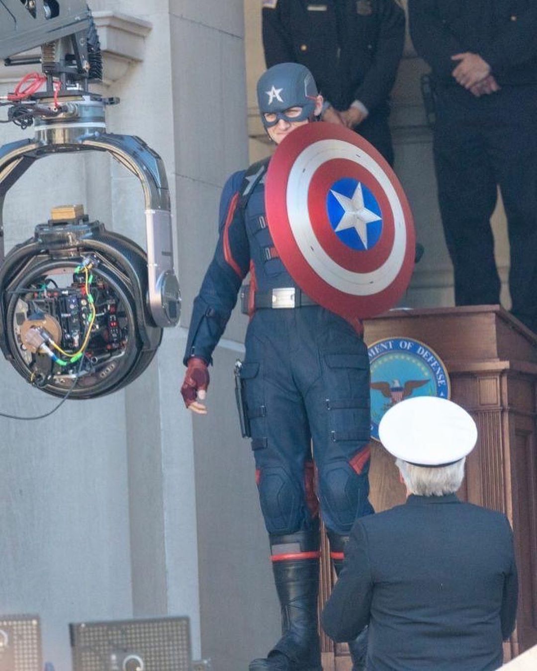 Novas fotos de bastidores da série “Falcão e o Soldado Invernal” flagraram um importante desenvolvimento da produção da plataforma Disney+ (Disney Plus) (Disney Plus).