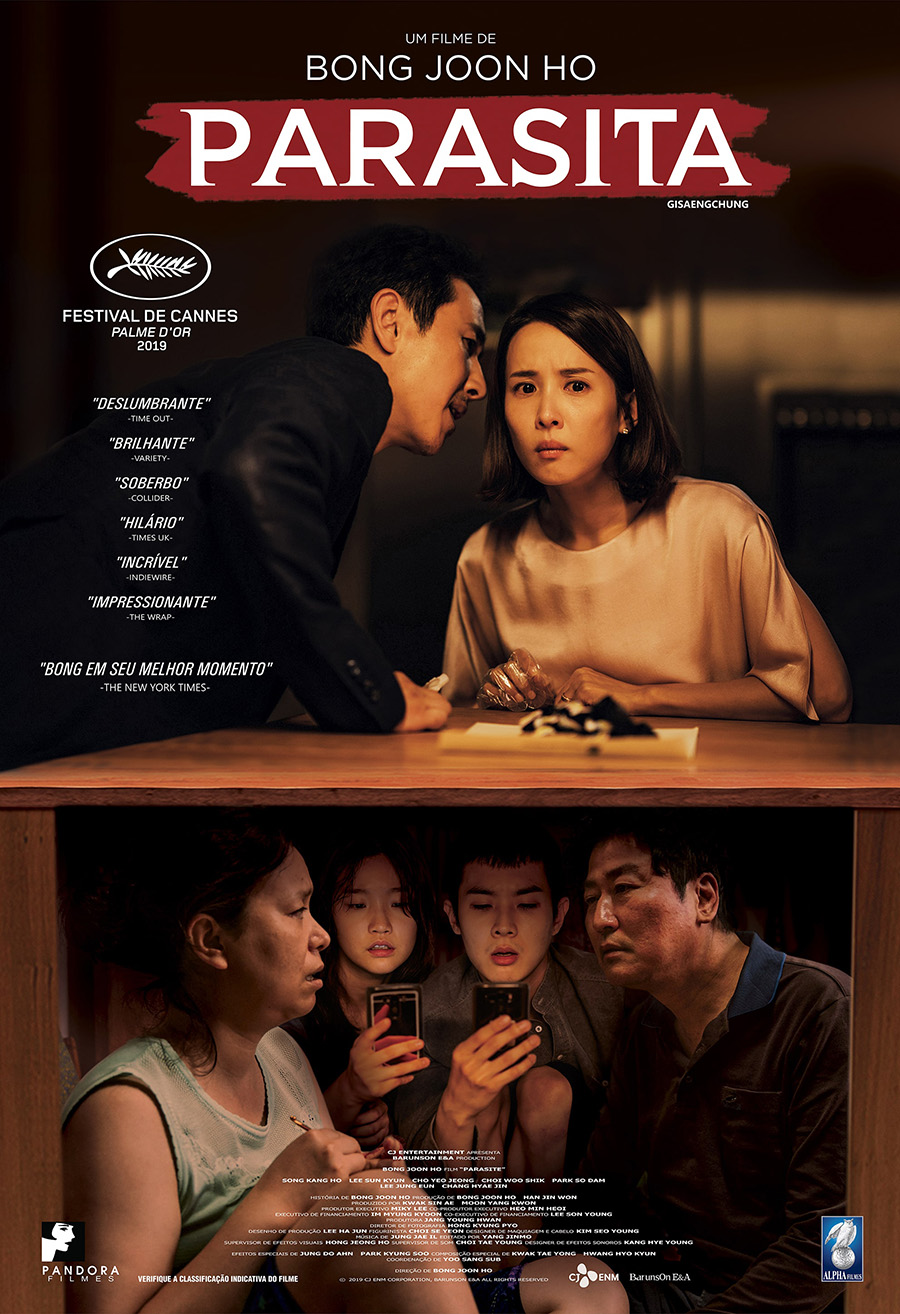 Melhor filme de 2019, o vencedor do Festival de Cannes “Parasita”, de Bong Joon Ho, também liderou mais duas listas: de melhor filme de suspense e de produção asiática. Vale observar que os títulos do Oriente Médio foram computados juntos do cinema africano, pois ambos são sub-representados no mercado nacional, e que faltaram produções da Oceania para somar um Top 5.