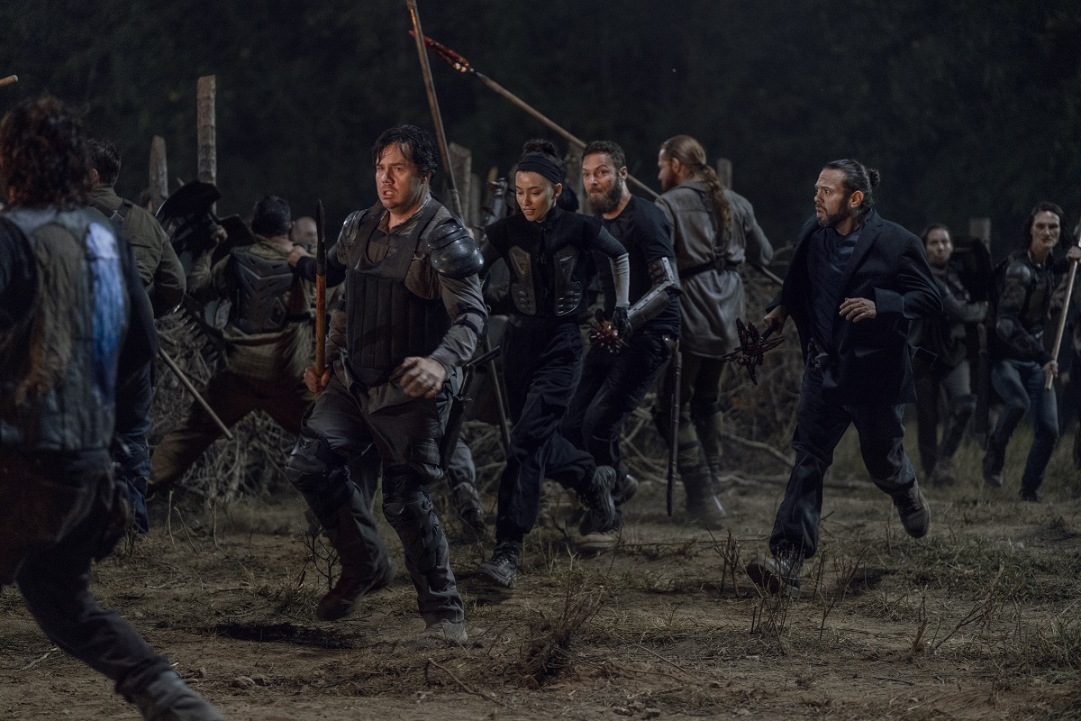 Christian Serratos as Rosita Espinosa, Josh McDermitt as Dr. Eugene Porter, Dan Fogler as Luke - The Walking Dead _ Season 10, Episode 11 - Photo Credit: Jace Downs/AMC