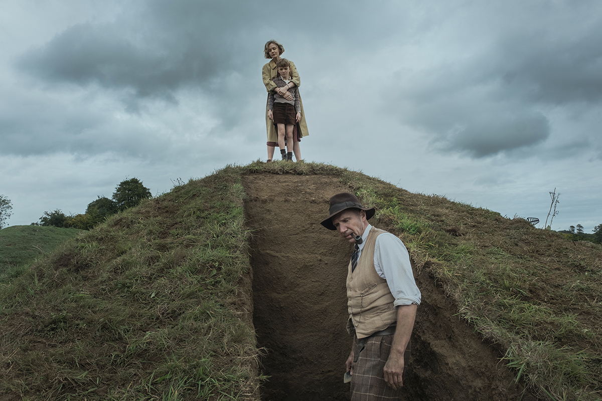 A prévia resume a trama, ao mostrar como uma rica viúva (Mulligan) convence um arqueólogo amador (Fiennes) a escavar sua propriedade em busca de artefatos medievais. Assim, em plena véspera da 2ª Guerra Mundial, acabam por fazer uma descoberta histórica.