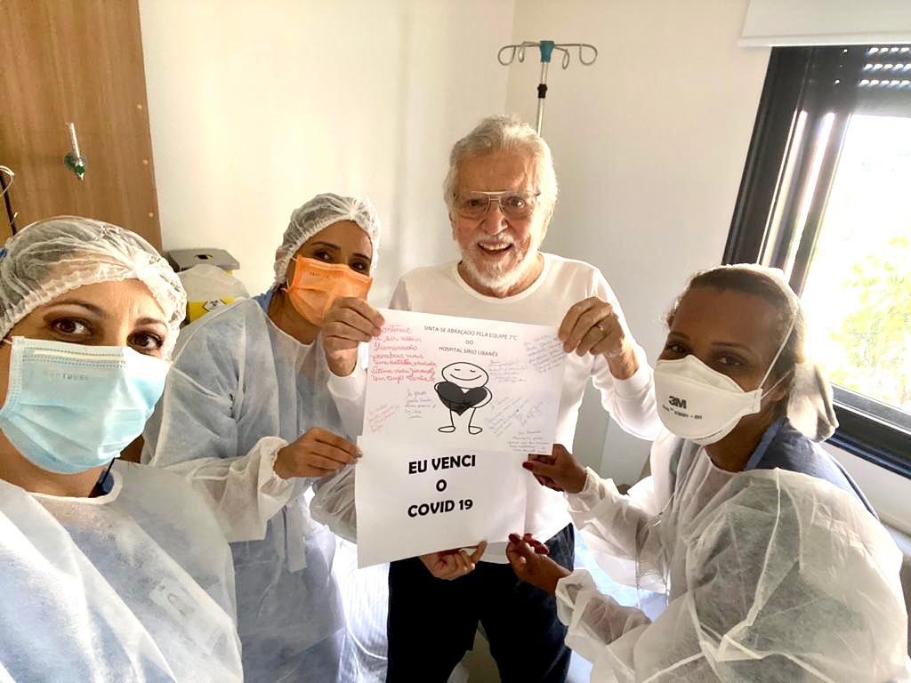 O humorista Carlos Alberto de Nóbrega, de 84 anos, recebeu alta do Hospital Sírio Libanês nesta terça (2/3), onde estava internado desde 20 de fevereiro em decorrência da covid-19. O próprio apresentador do “A Praça É Nossa” divulgou sua saída do centro médico nas redes sociais, em um post em que comemorou sua recuperação. Ao lado de uma foto em que aparece cercado por enfermeiros, segurando um desenho em que se lê “Eu venci o covid-19”, Nóbrega escreveu: “Nós vencemos. Vencemos porque vocês oraram muito por mim. Pelas centenas de mensagens de amigos, por ter uma equipe médica que cuidou de mim com muito amor, essa equipe de enfermagem que mais cuidou com muito amor”, agradecendo nominalmente os médicos, a esposa, os filhos e netos. A alta aconteceu quatro dias após a liberação de sua esposa, Renata Domingues, também internada com coronavírus. A contaminação ainda atingiu um dos filhos do apresentador, João Victor. O rapaz, que tem só 20 anos, fez seu tratamento em casa. Ver essa foto no Instagram Uma publicação compartilhada por Carlos Alberto De Nobrega (@calbertonobrega)