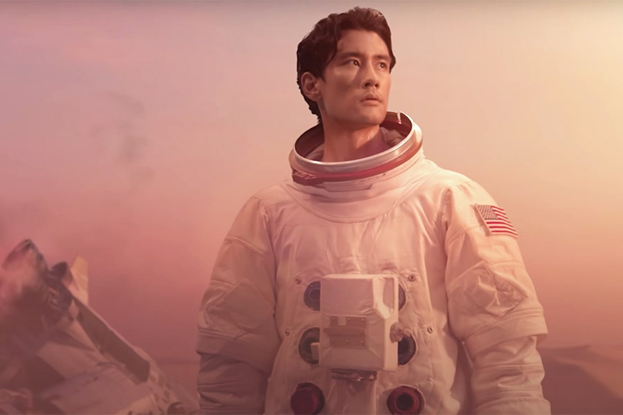 O ator Alex Landi, conhecido como o médico Nico Kim de “Grey’s Anatomy”, é um astronauta perdido, que vai parar no planeta cor-de-rosa habitado por Doja Cat e SZA, no clipe de “Kiss Me More”.