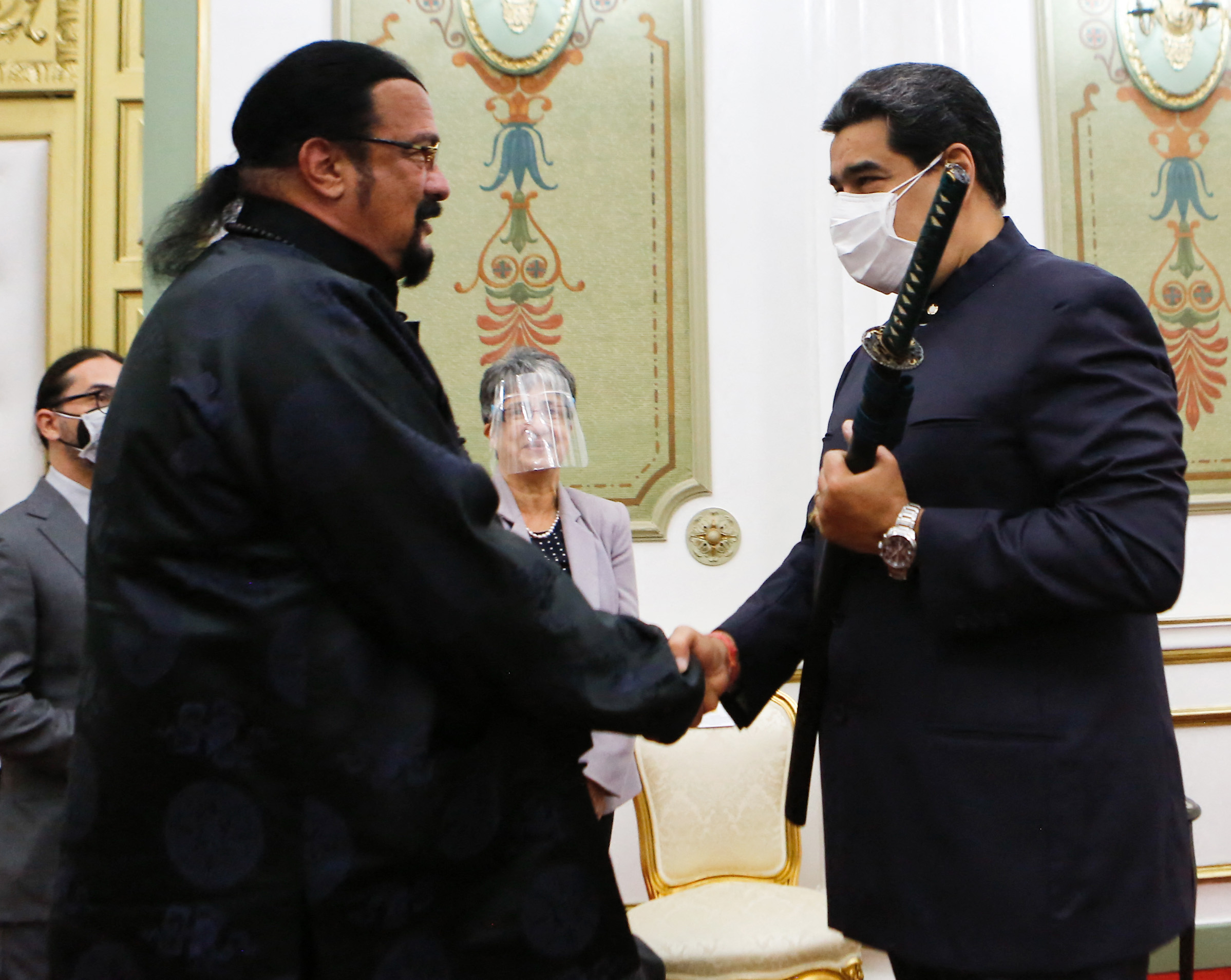 Steven Seagal presenteia Nicolás Maduro com espada samurai “da Rússia”