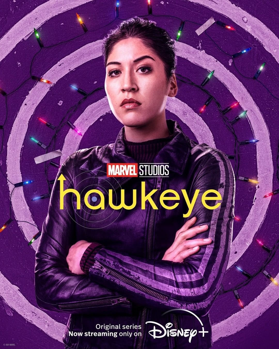 A Marvel divulgou novos pôsteres e vídeo de bastidores de “Gavião Arqueiro”, que destacam a personagem Maya Lopez, também conhecida como Eco (Echo em inglês), líder da máfia dos agasalhos (tracksuit mafia).