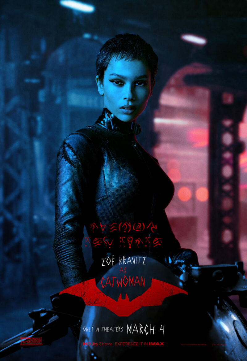 O elenco destaca Zoë Kravitz (da série “Big Little Lies”) como Mulher-Gato, Paul Dano (“12 Anos de Escravidão”) como o Charada e Colin Farrell (“Dumbo”) como Pinguim, todos destacados nos pôsteres.