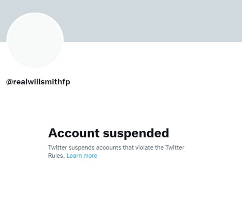 Não há maiores explicações para a suspensão. Quem se dirige ao perfil do astro, @realwillsmithfp, encontra a declaração de que a conta foi suspensa e que o “Twitter suspende contas que violam regras” da rede social.