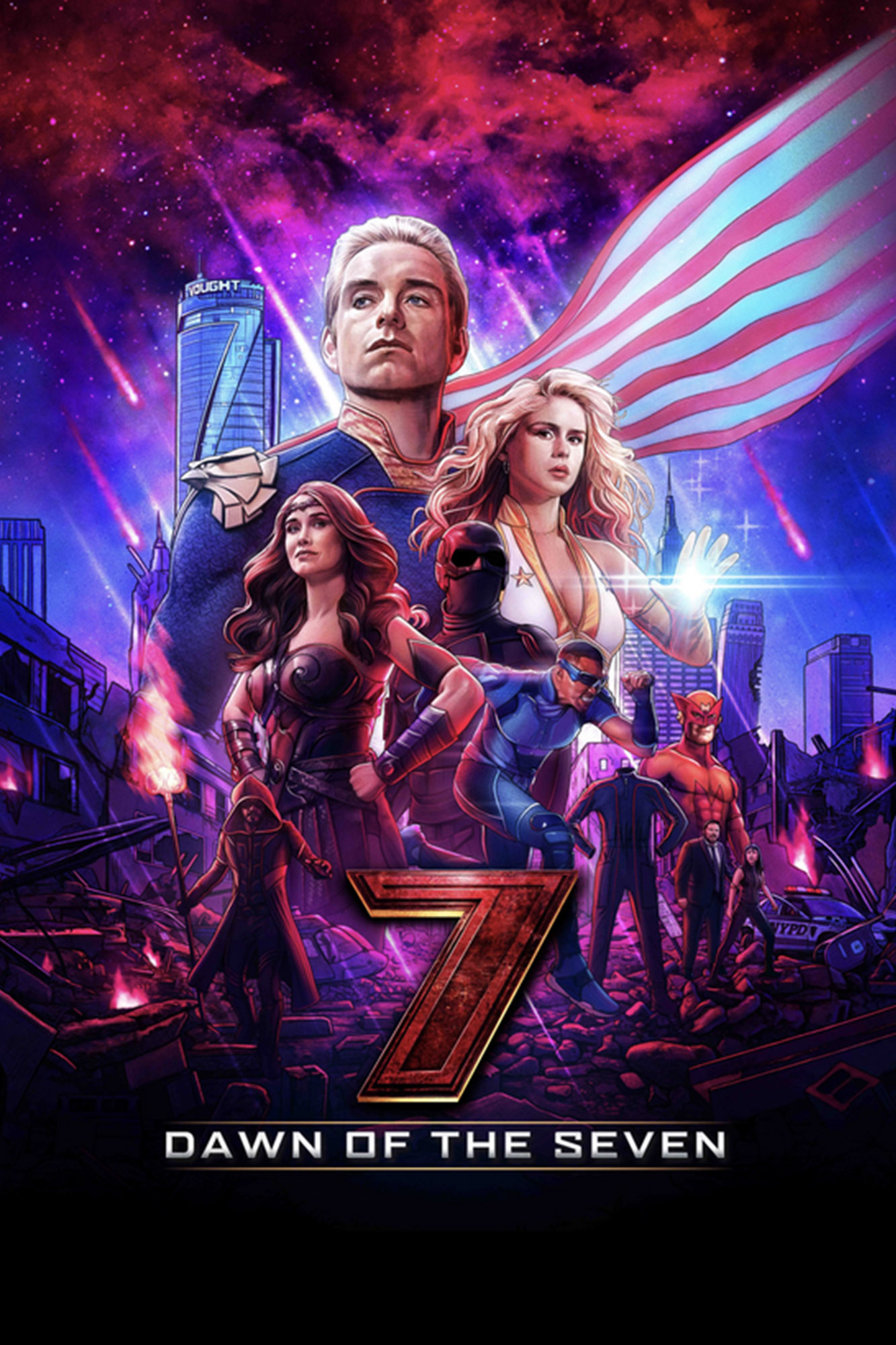 A Amazon Prime Video divulgou uma coleção de pôsteres e o trailer legendado de “Dawn of the Seven”, o filme produzido como parte da trama de “The Boys”. As cenas da filmagem foram apresentadas durante a 2ª temporada, mas, após o desfecho dos últimos capítulos, a história foi claramente modificada. A versão “Snydercut” da brincadeira apresentando a suposta heroína Tempesta (Storm Front, interpretada por Aya Cash) como sempre foi: uma vilã.