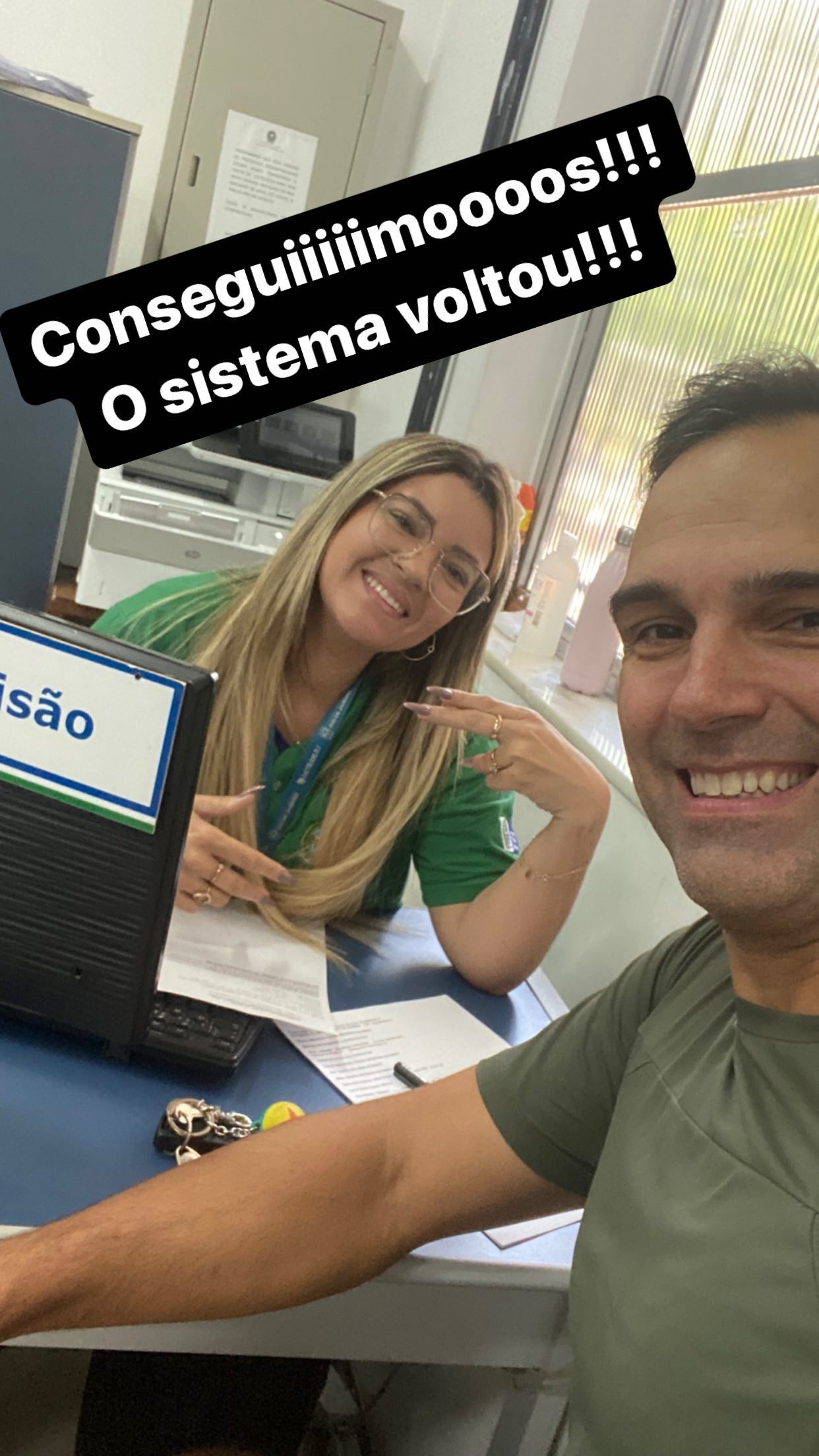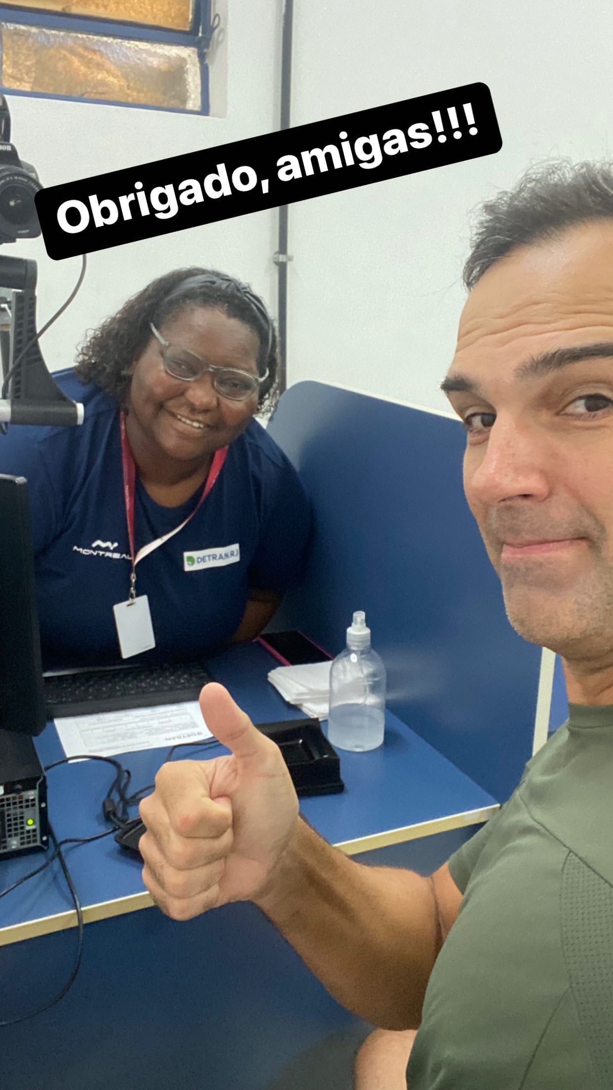 Tadeu também publicou selfies com as funcionárias do Detran e avisou nos stories que conseguiu renovar a habilitação. “Conseguimos! O sistema voltou! Obrigado, amigas”, agradeceu o apresentador.