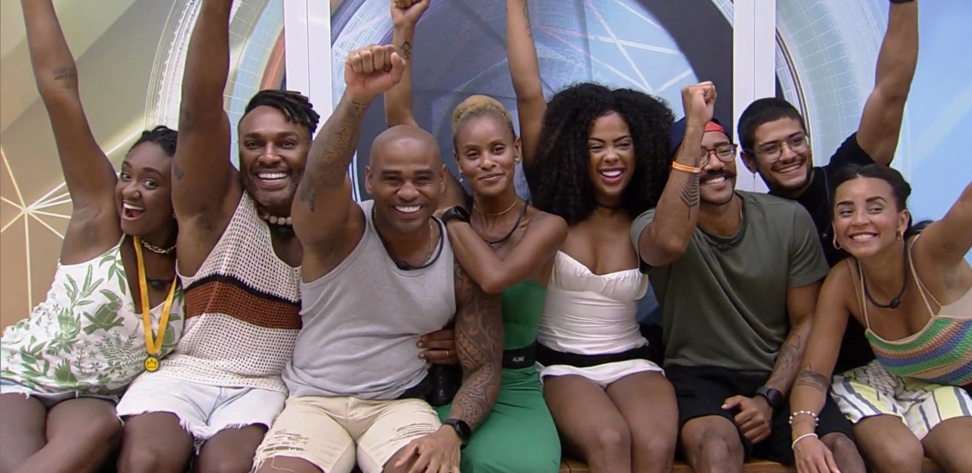 Fred Nicácio conseguiu unir todos os participantes negros do “BBB 23” numa foto emblemática, registrada nesta terça-feira (28/3). Dias atrás, o brother propôs um “pódio todo preto”, mas nem todos os confinados concordaram com a ideia. Nesta tarde, o médico sugeriu que os brothers negros fizessem um registro fotográfico numa escala de tom de pele. Para a sorte, os participantes conseguiram deixar suas rivalidades de lado para marcar a história do reality show. Desta forma, a imagem começou por Sarah Aline, a mais retinta do grupo, e terminou com a modelo Domitila Barros na outra ponta. “Olha, tons sobre tons”, se empolgou Nicácio após ver a cena refletida no espelho da sala. Fredão ainda aproveitou a reunião histórica para pedir que eles erguessem o punho, em um movimento que se tornou símbolo da resistência negra pelo mundo. Nas redes sociais, os internautas se emocionaram com a união dos participantes negros. “Big Preto Brasil!”, escreveu um usuário do Twitter, em menção a uma fala de Fred Nicácio no dia em que retornou para o programa. São demais Adm BIG PRETO BRASIL pic.twitter.com/vNlLZKxgqO — bre 🤿 (@bredumau) March 28, 2023