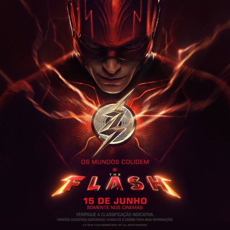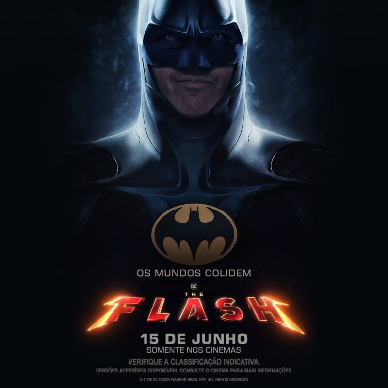A Warner Bros. divulgou seis novos pôsteres de “The Flash”, trazendo individualmente o herói do título (interpretado por Ezra Miller), Batman (na versão de Michael Keaton) e Supergirl (Sasha Cale), em versões para os mercados dos EUA e Brasil.