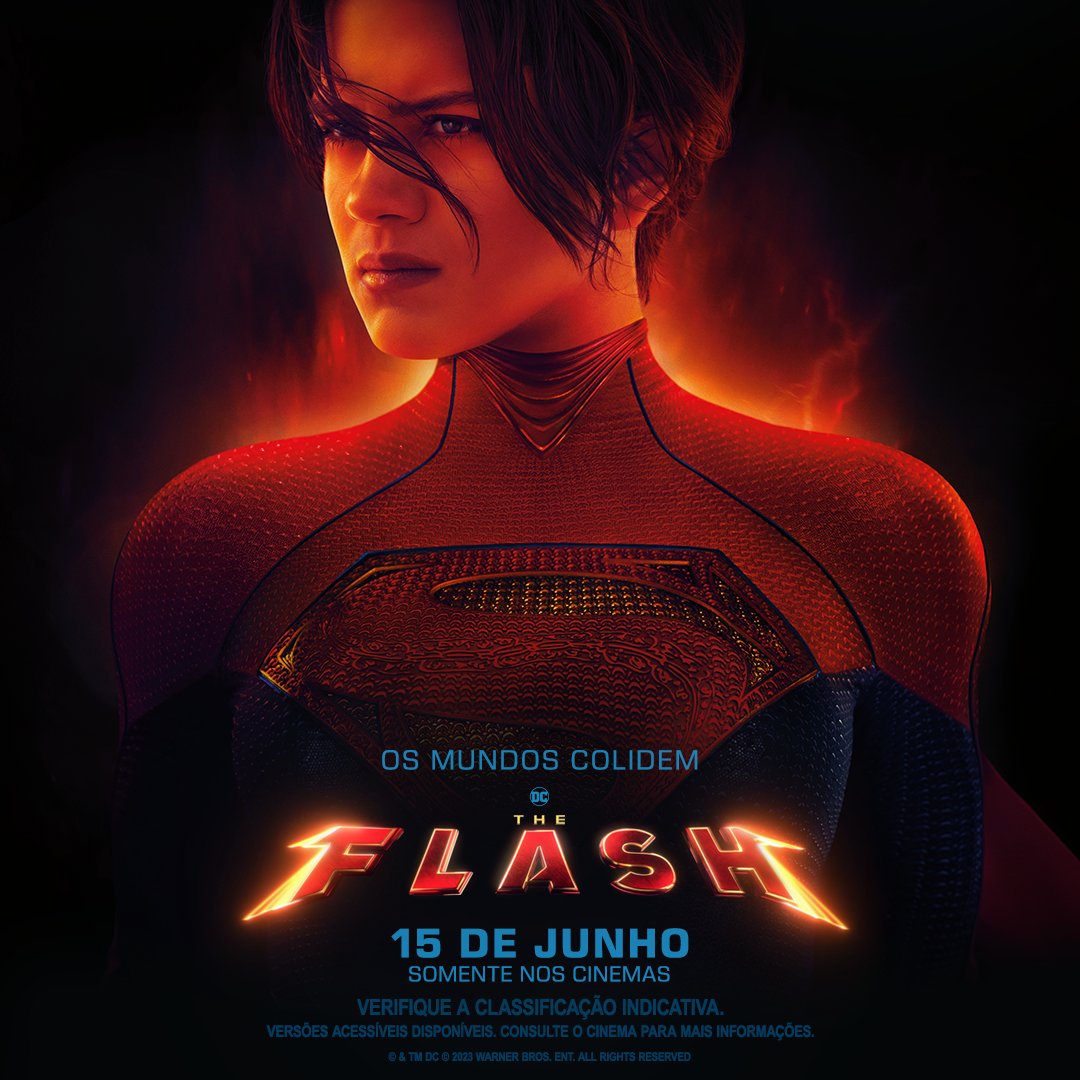 A Warner Bros. divulgou seis novos pôsteres de “The Flash”, trazendo individualmente o herói do título (interpretado por Ezra Miller), Batman (na versão de Michael Keaton) e Supergirl (Sasha Cale), em versões para os mercados dos EUA e Brasil.