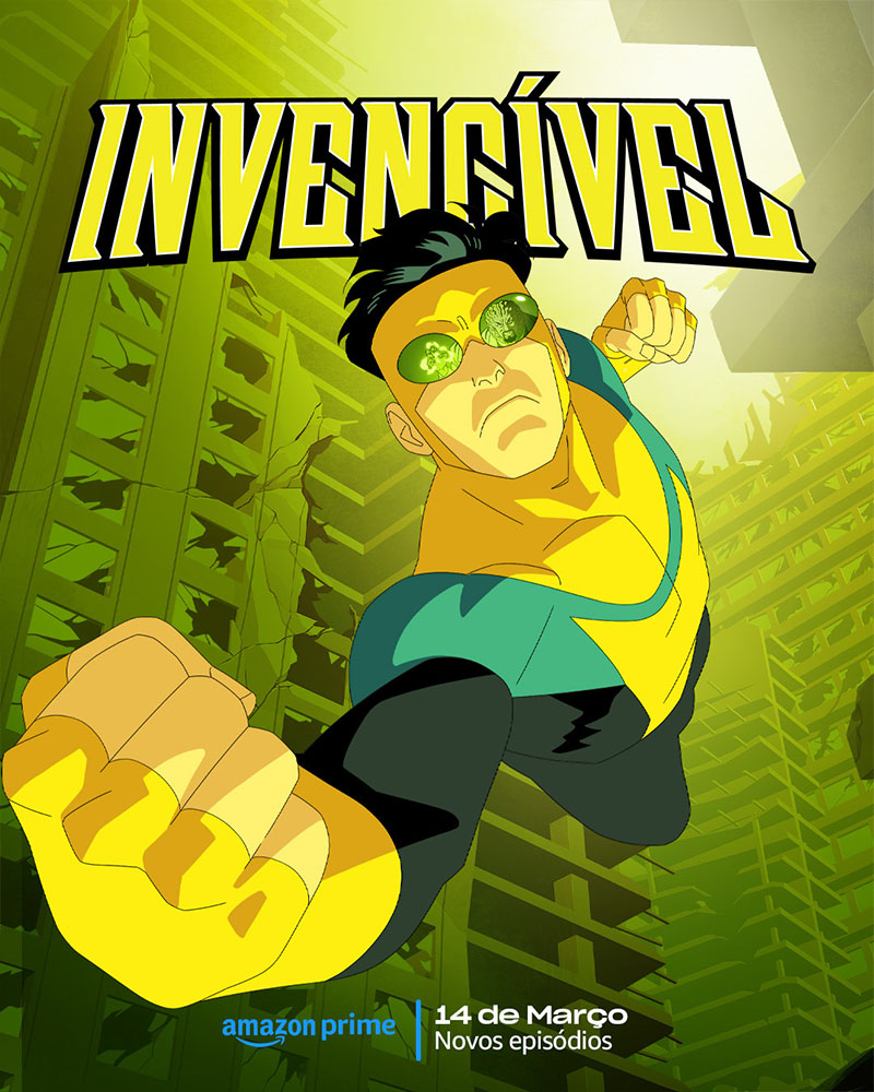 A plataforma Prime Video divulgou pôsteres e o trailer da Parte 2 da 2ª temporada de “Invencível”. A prévia traz muitas lutas, com cenas brutais, e se encerra com um funeral dramático, sugerindo a morte de um dos personagens principais.