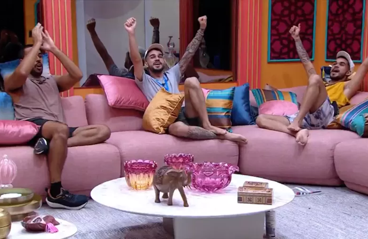 Participantes comemoram o fim da restrição alimentar imposta à casa desde quinta-feira