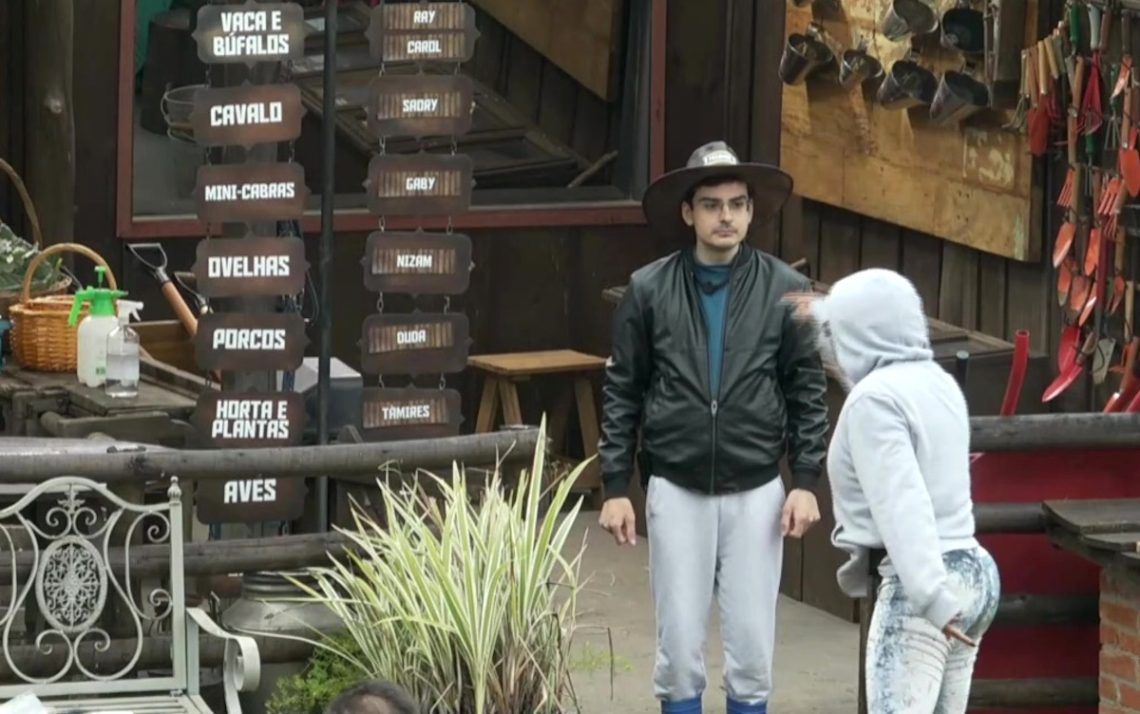 Carol não só se recusou a tratar da vaca como avisou que a responsabilidade era de Dudu. “Se eu não faço, o fazendeiro faz. Ele não é homem de palavra, de falar que vai botar? Eu também sou mulher de palavra, falei que não ia fazer, não vou fazer! E vou ver quem é que vai me fazer fazer essa obrigação aí! Vai lá, fazendeiro, fazer a vaca. Tá no seu horário, herin!”, debochou Carol. Dudu rebateu: “Porque a dondoca não quer fazer, né.”