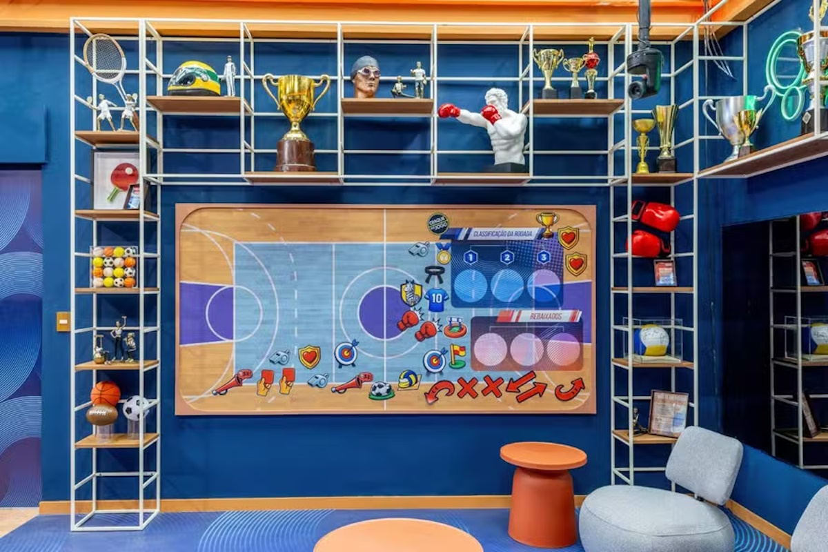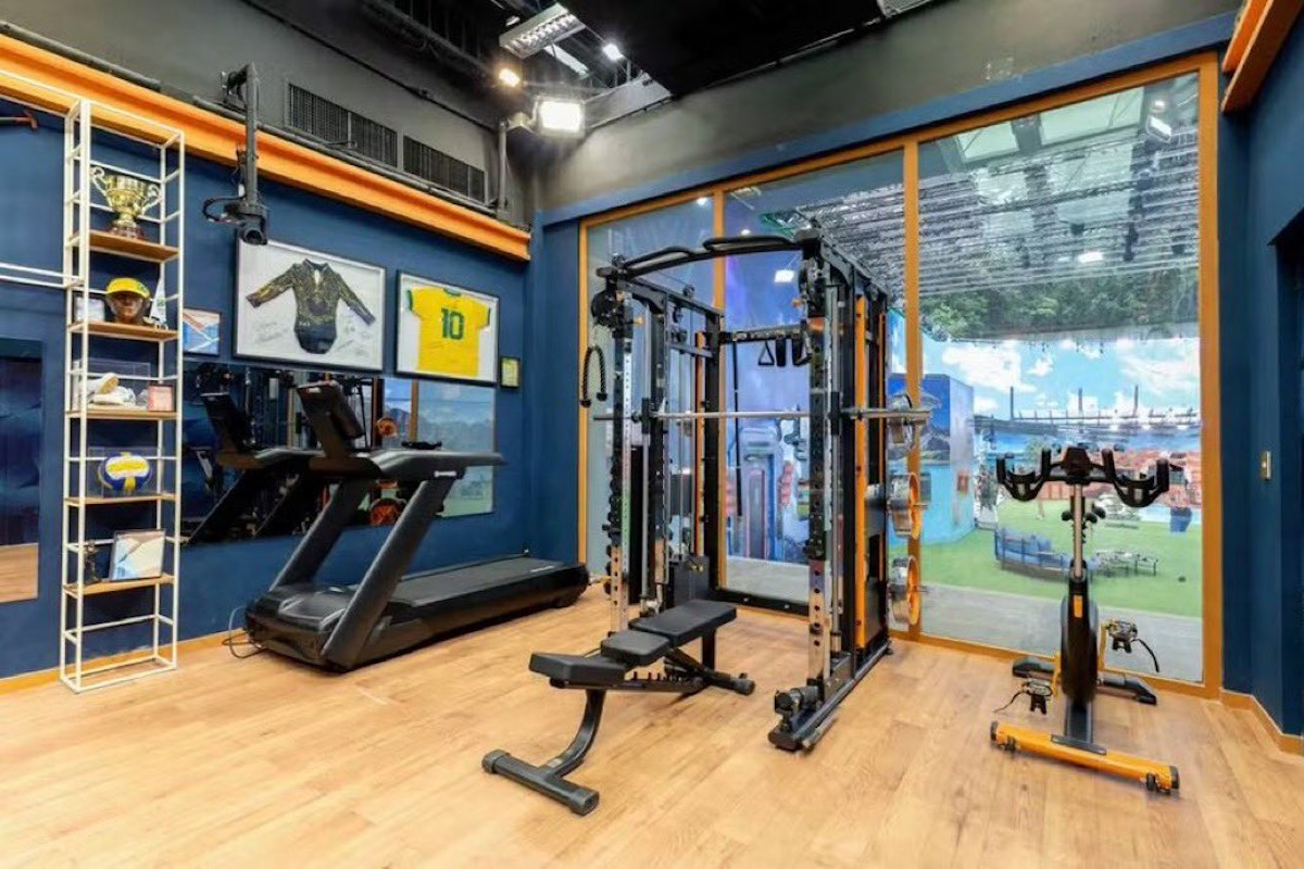 No banheiro principal, o tema é o sonho da beleza, com elementos como bocas e símbolos que, nas palavras da diretora, dão ao ambiente “uma imponência, é chique”. Já na área externa, imagens remetem ao sonho da aventura. A academia, ambiente mais detalhado nas fotos prévias, conta com itens personalizados por atletas, incluindo uma prancha de surfe assinada.