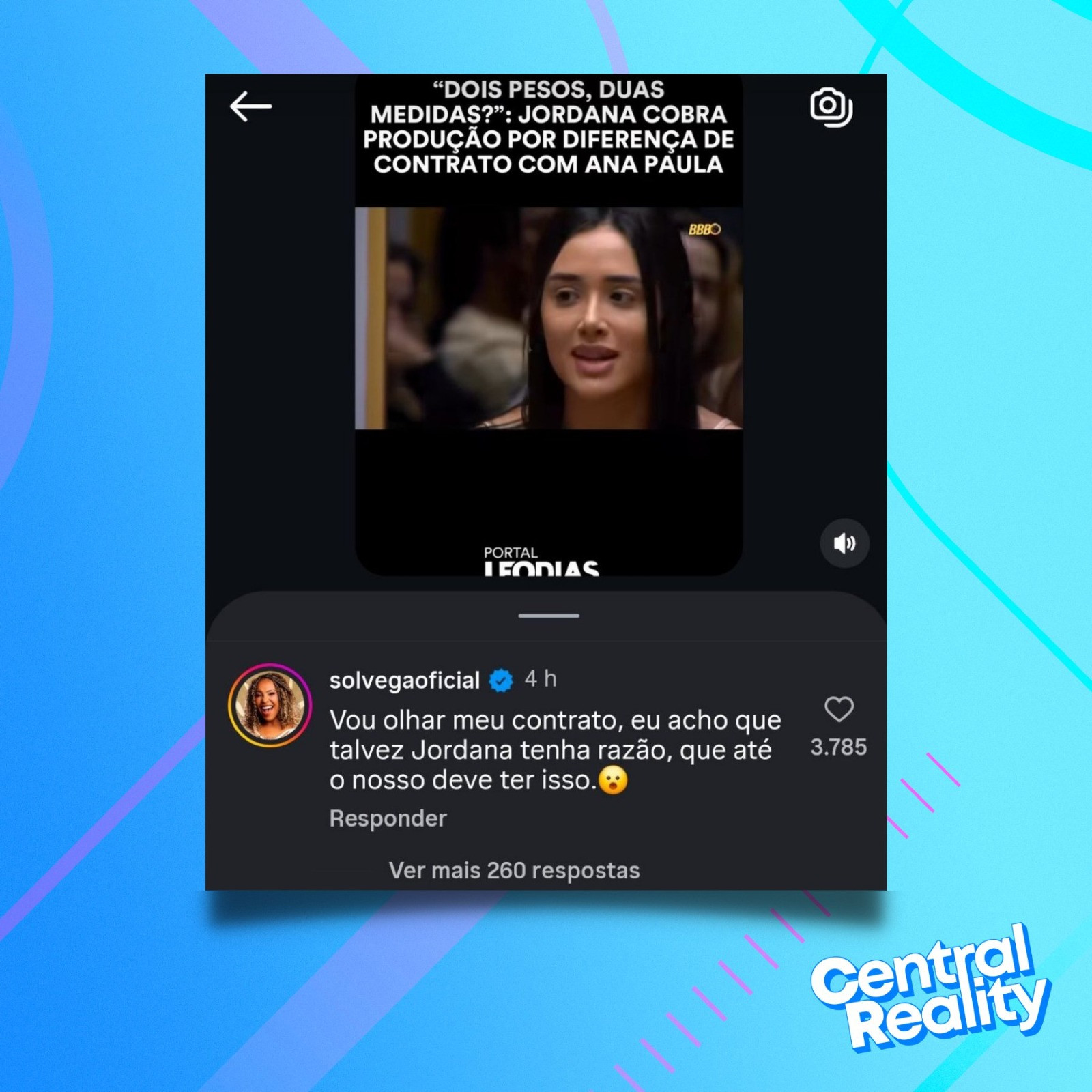 A ex-integrante do programa aproveitou uma publicação no Instagram para se manifestar. A postagem exibia uma foto da advogada com o título: “Dois pesos, duas medidas?: Jordana cobra produção por diferença de contrato com Ana Paula”. Sol Vega concordou com a revolta e deixou claro que também cobrará explicações da emissora.