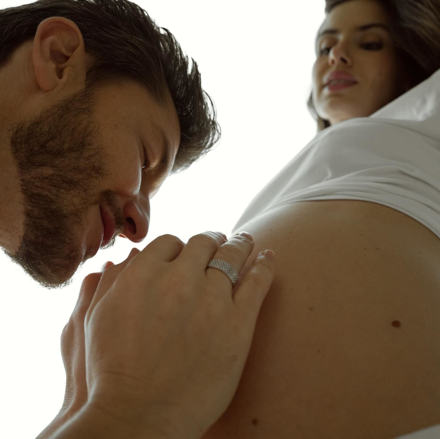 Atriz compartilha fotos exibindo a barriga ao lado de Klebber Toledo e recebe mensagens de colegas e fãs após revelar primeira gestação