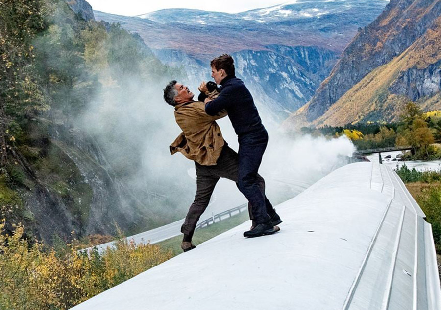 “Missão: Impossível – Acerto de Contas Parte 1” tem diversas sequências de ação extrema, filmadas de forma perigosa pelo astro Tom Cruise. Um vídeo mais recente da produção da Paramount Pictures enfocou uma delas: uma luta árdua que ocorre em cima de um trem em disparada e que termina com o veículo desabando de um penhasco. No vídeo, o diretor Christopher McQuarrie explicou que uma das principais dificuldades enfrentadas pela produção foi encontrar uma linha de trem em funcionamento disponível para as filmagens. A escolhida foi uma linha férrea na Noruega, que se mostrou perfeita para a sequência. O trajeto tinha 40 quilômetros de extensão e cruzava uma paisagem rural, conectando duas cidades. Um trem sob medida Outro problema foi o próprio trem, que precisaria ser destruído na filmagem. “Devido à falta de trens disponíveis para serem destruídos, a produção teve que construir sua locomotiva para destruí-la”, contou o cineasta. Só para a realização dessa cena, uma locomotiva de efeitos especiais de aproximadamente 70 toneladas precisou ser construída, o que levou oito meses. “Ninguém no mundo está fazendo esse nível de filmagem prática e talvez nunca mais seja feito”, afirmou McQuarrie. Ao final, “cada câmera teve apenas uma chance de acertar”, acrescentou o diretor. É que eles só tinham um trem para destruir e não poderiam refazer as filmagens. Luta no topo do trem Durante a filmagem, a velocidade do trem atingiu cerca de 100 km/h. Nesse momento, Tom Cruise e Esai Morales precisaram subir no topo do veículo e se enfrentar, com um vale na Noruega de paisagem de fundo. “Já fiz várias cenas de luta, mas fazer isso em um trem em movimento é um verdadeiro teste de fogo”, disse Morales. Os esforços monumentais investidos na sequência parecem ter valido a pena, já que críticos e reações iniciais ao filme destacam as cenas de ação, e particularmente as cenas do trem, como ponto alto do filme. “Missão: Impossível – Acerto de Contas Parte 1” tem estreia marcada para esta quinta (13/7) no Brasil, um dia depois do lançamento nos EUA.