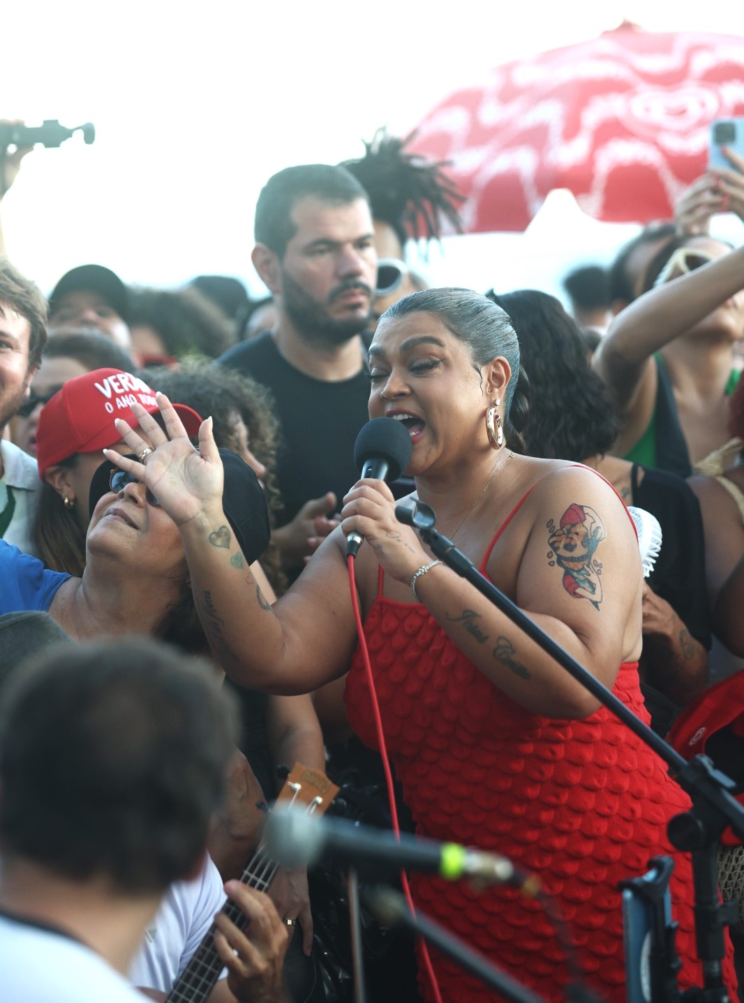 A cantora soltou a voz em alguns grandes sucessos da música brasileira durante apresentação surpresa na Pedra do Arpoador