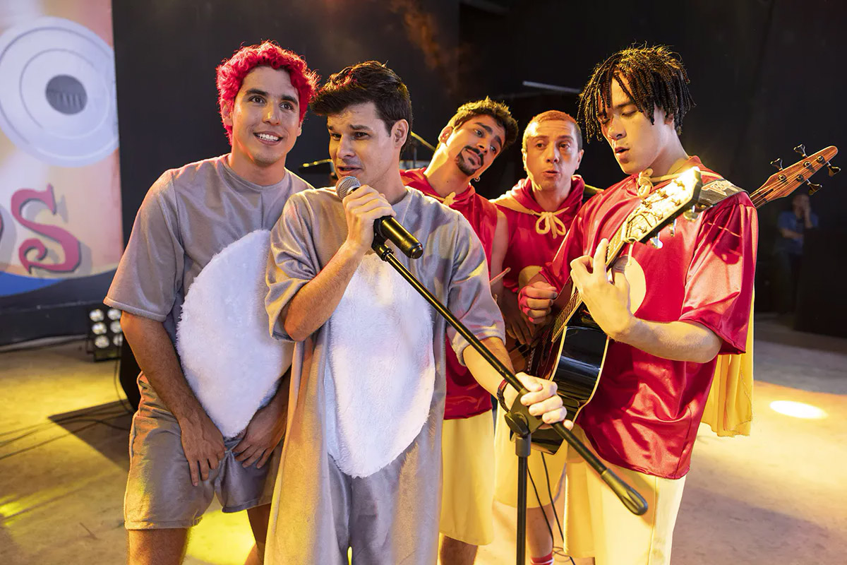A Imagem Filmes divulgou o aguardado trailer de “Mamomas Assassinas – O Filme”, que conta a história da banda de Guarulhos que se tornou sensação nacional em meados anos 1990. A prévia foca na transição do grupo musical, que começou como uma banda de rock progressivo, chamada Utopia, que após fracassar se reinventa como uma banda comédia e se torna um fenômeno. Mamonas Assassinas acabou virando uma das bandas mais amadas do Brasil com sua alegria contagiante, mas sua trajetória foi curta, interrompida por um fim trágico – com a morte de todos os seus integrantes – em um acidente aéreo na volta de um show, em 2 de março de 1996. A produção pretende mostrar a vida dos cinco integrantes da banda antes da fama, as dificuldades no início da carreira, a formação do grupo e o sucesso meteórico, preferindo focar nos desafios dos amigos de Guarulhos que foram catapultados para a fama do que no trágico acidente aéreo. Produção e elenco O projeto original foi criado por Carlos Lombardi – dramaturgo de grandes sucessos como “Uga Uga” (2000) e Kubanacan (2004) – e foi escrito pelo repórter Carlos Amorim como uma minissérie da Record TV. O projeto acabou reconfigurado para as telas grandes com direção de Edson Spinello, que já comandou as novelas “Apocalipse” (2017) e “Rei Davi” (2012), e com o lançamento do longa-metragem faz sua estreia no cinema. Para o elenco principal, a aposta foi em atores desconhecidos do grande público, mas com grande experiência em musicais. Ruy Brissac, que interpreta o vocalista Dinho, repete o papel que viveu no teatro em “Mamonas, o Musical”, e que lhe rendeu o prêmio Bibi Ferreira de Ator Revelação. Adriano Tunes, que vive o baixista Samuel Reoli, é humorista e já trabalhou no programa “Dedé e o Comando Maluco”, do SBT, além de musicais como o da apresentadora Hebe Camargo. Robson Lima, que interpreta o tecladista Júlio Rasec, também é ator de teatro e trabalhou em “Yank – O Musical”. Rhener Freitas, que tem o papel do baixista Sérgio Reoli, trabalhou na série “Bia”, do Disney Channel. O cantor e apresentador Yudi Tamashiro, que chegou a integrar o elenco do musical dos Mamonas, iria interpretar o guitarrista Bento, mas foi substituído por Alberto Hinomoto, sobrinho do personagem real. Alberto, que tinha 17 anos durante a produção, filmou com a mesma guitarra que pertenceu a seu tio, usada por ele nos shows da banda. As filmagens marcam sua estreia nas telas. Outro nome que estreia como atriz é a famosa tiktoker Fernanda “Fefe” Schneider, de 20 anos. Ela irá interpretar Valéria Zoppello, a namorada de Dinho, que perdeu seu companheiro quando tinha apenas 24 anos. Fernanda é um fenômeno no TikTok e acumula mais de 16 milhões de seguidores na plataforma. Para completar, os pais de Dinho são interpretados por Guta Ruiz, que já esteve no filme “Gostosas, Lindas e Sexies”, e Jarbas Homem de Mello, marido de Cláudia Raia e ator de “Roque Santeiro – O Musical”. “Mamonas Assassinas – O Filme” tem estreia marcada para 28 de dezembro nos cinemas.