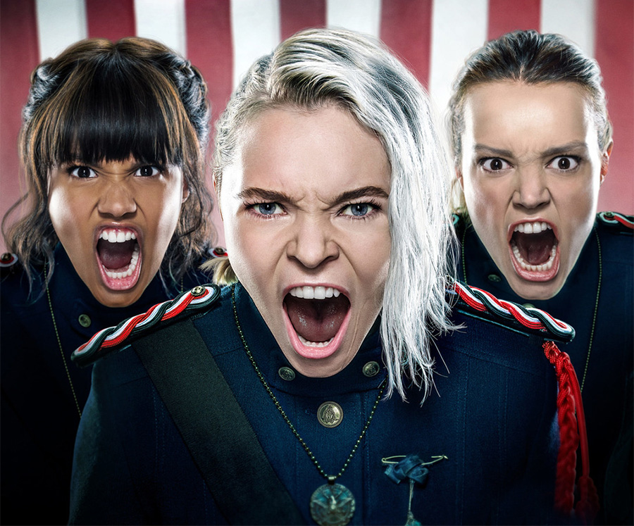 O canal pago americano Freeform divulgou uma coleção de pôsteres e o trailer completo de “Motherland: Fort Salem”, série de fantasia sobre um exército de bruxas, que faz uso extensivo de efeitos visuais. A prévia destaca o aspecto militar e patriótico da organização feminina, além de envolvimentos românticos, e revela quem são os inimigos: uma facção de bruxas terroristas. A trama se passa em uma realidade alternativa, onde as bruxas concordaram em lutar pela independência dos EUA em troca do fim de sua perseguição. Séculos depois, elas representam a força armada mais perigosa do país. Criada por Eliot Laurence (que também criou “Claws”), a série vai seguir três jovens desde seu treinamento básico em magia de combate até sua ida assustadora e emocionante para a guerra. Neste mundo, os papéis tradicionais de gênero e poder são invertidos, com as mulheres na linha de frente, enfrentando a luta iminente e as ameaças terroristas com táticas e armas sobrenaturais. O elenco destaca Taylor Hickson (a Petra de “Deadly Class”), Jessica Sutton (“A Barraca do Beijo”), Amalia Holm (“Alena”) e Demetria McKinney (“Saints & Sinners”). A série tem produção do ator Will Ferrell (“Pai em Dose Dupla”) e do diretor Adam McKay (“Vice”) e a estreia está marcada para 18 de março nos EUA.