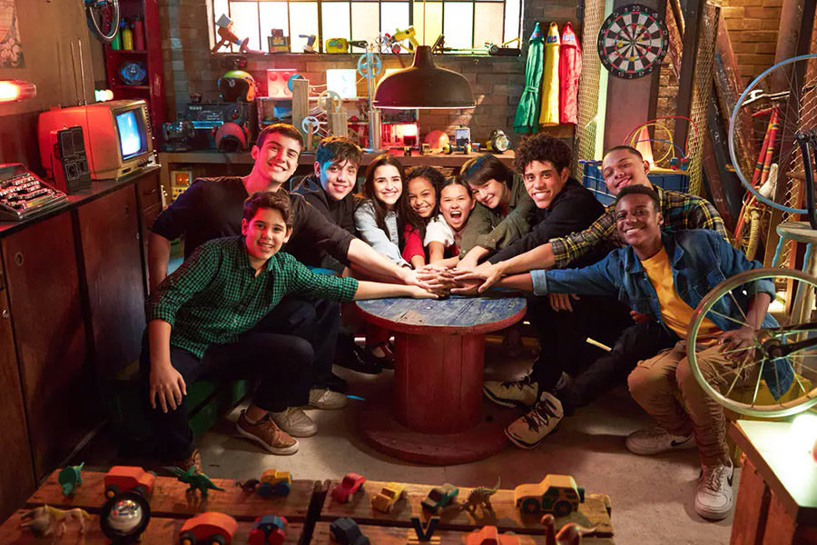 O canal pago infantil Gloob está preparando um especial da série “Detetives do Prédio Azul” (D.P.A.) para o Dia das Crianças. A primeira foto adiantada pela divulgação revela que o programa vai realizar um encontro com todos os detetives mirins que já passaram pelo prédio azul: Stéfano Agostini, Caio Manhente, Pedro Motta, Letícia Pedro, a novata Emily Puppim, Nathália Costa, Letícia Braga, Cauê Campos, Anderson Lima e Samuel Minervino. Chamado de “D.P.A. – De Volta ao Clubinho”, o especial trará de volta os atores mais antigos, que passearão pelos cenários, mostrarão curiosidades do seriado e relembrarão cenas marcantes, junto com os novos intérpretes dos detetives. A estreia vai acontecer no próximo no dia 12, no YouTube do Mundo Gloob. Depois disso, a atração entrará na programação do canal no dia 25, ficando em seguida disponível no Globoplay + Canais. “Detetives do Prédio Azul” estreou em 2012, junto com o próprio Gloob. No programa, três amigos inseparáveis fazem investigações no edifício onde moram. Mas como o elenco cresce, os personagens tem sido sucessivamente substituídos por novos moradores. Além da série, os detetives mirins também estrelaram três filmes com sucesso nos cinemas brasileiros.
