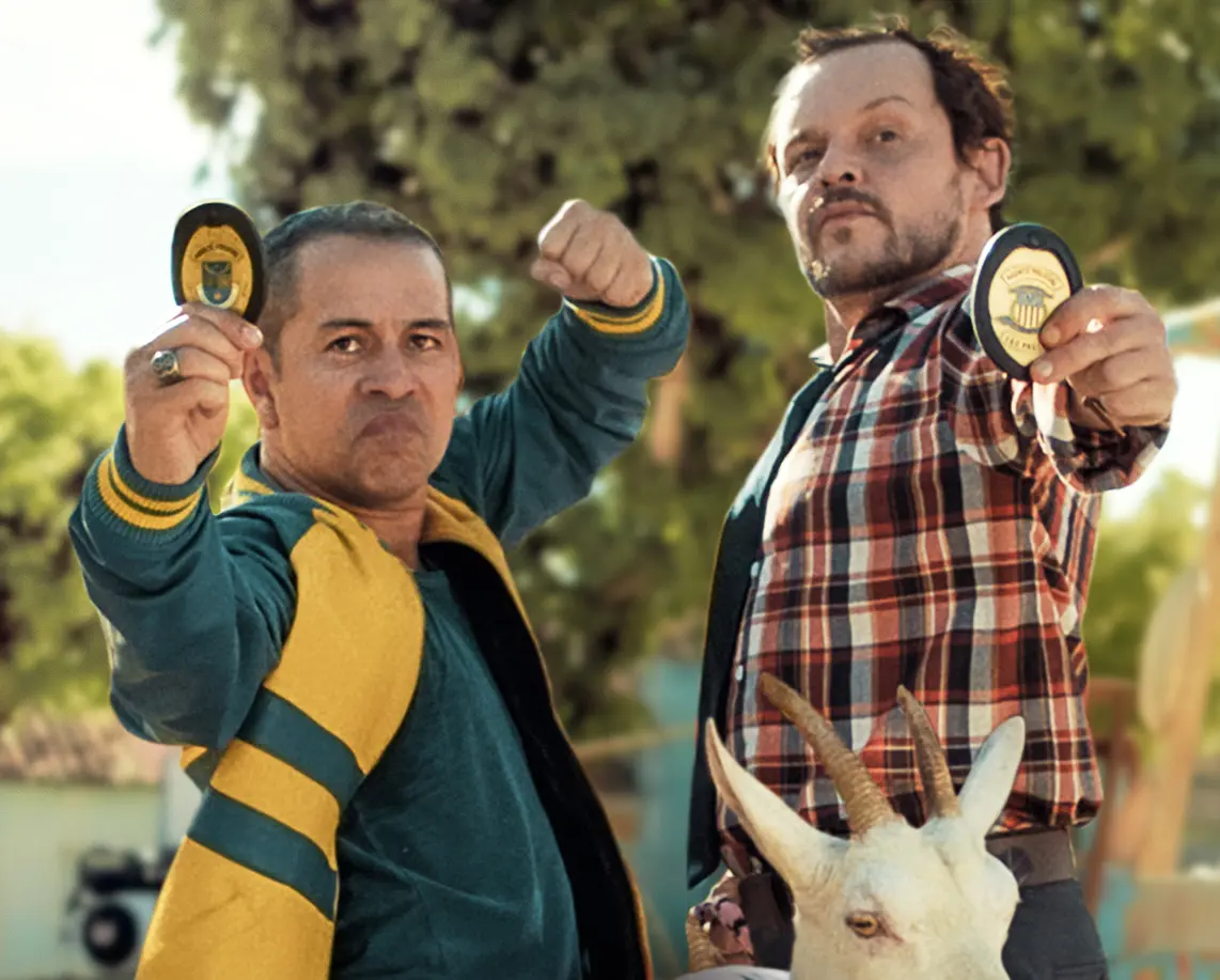 A Netflix divulgou o pôster e o trailer de sua nova comédia nacional, “Cabras da Peste”, estrelada por Edmilson Filho e Matheus Nachtergaele, que trabalharam juntos na série “Cine Holliúdy”. O produtor do filme, por sinal, é o mesmo da série da Globo: Halder Gomes. Na trama, Bruceuilis (Filho) é um policial do interior do Ceará que, para resgatar a surrupiada Celestina, uma cabra considerada patrimônio da cidade, viaja até São Paulo e alista a ajuda de Trindade (Nachtergaele), um escrivão da polícia que resolve se aventurar em campo, mesmo não sendo sua especialidade. O longa segue o estilo das comédias de “tiras parceiros” (buddy cop), adaptada ao estilo trapalhão das obras cearenses de Halder Gomes. Só que, desta vez, o responsável por “Cine Holliúdy” e “O Shaolin do Sertão” não assina a direção. A missão coube a Vitor Brandt (“Copa de Elite”). A produção também inclui no elenco Leandro Ramos, Letícia Lima, Juliano Cazarré, Evelyn Castro e Falcão, e tem estreia marcada para 18 de março.