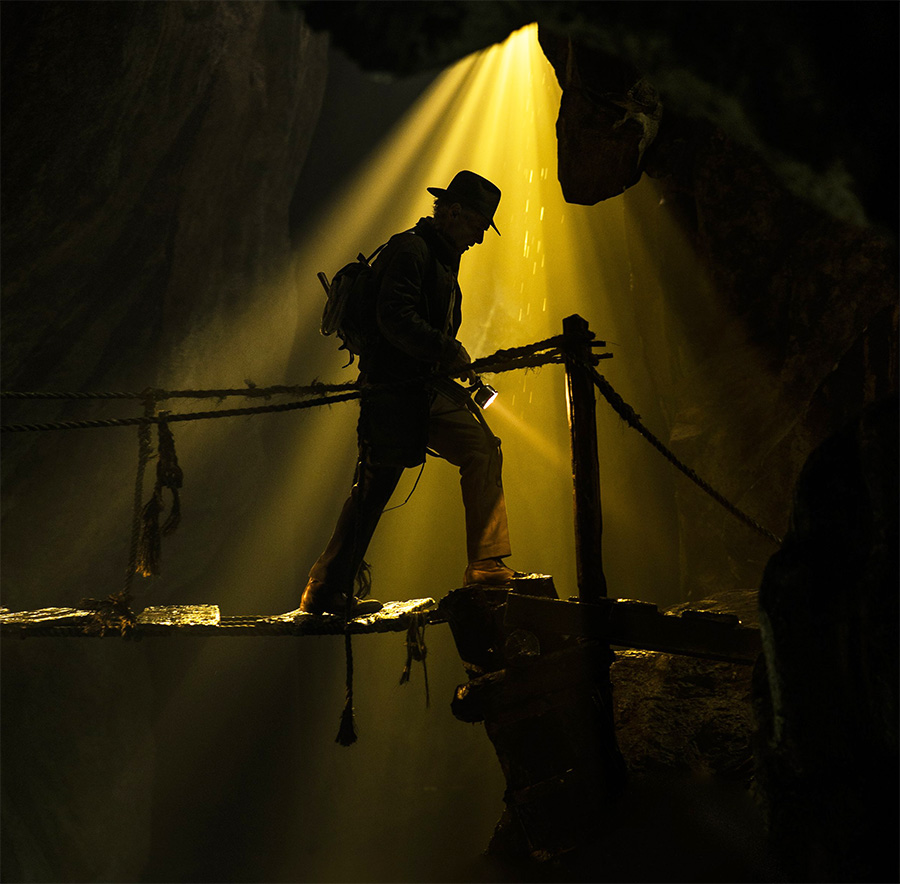 A Lucasfilm divulgou a primeira imagem de “Indiana Jones 5”, que destaca a silhueta do ator Harrison Ford, caminhando sobre uma ponte precária no interior de uma caverna mal iluminada – o que poderia ser mais Indiana Jones que isso? Atualmente em pós-produção, o filme tem direção de James Mangold (“Logan”), marcando a primeira aventura do arqueólogo veterano que não conta com a direção de Steven Spielberg. As filmagens começaram em maio do ano passado no Reino Unido e se encerraram em fevereiro deste ano, mas a única notícia vinda dos sets neste período foi um acidente sofrido por Harrison Ford logo nos primeiros dias. Ele machucou o ombro, precisando se afastar brevemente dos trabalhos. Apesar do acidente, a produção não foi interrompida. Mesmo assim, poucas fotos foram feitas por fãs e paparazzi durante as filmagens. As imagens que circularam nas redes sociais sugeriram que a história se passa em 1969, ano da chegada do homem à Lua, mas também houve registros de um trem identificado com insígnia nazista. O elenco da produção inclui Boyd Holbrock (“Logan”), Mads Mikkelsen (“Druk – Mais uma Rodada”), Phoebe Waller-Bridge (“Fleabag”), Antonio Banderas (“Uncharted”), Toby Jones (“Um Menino Chamado Natal”), Thomas Kretschmann (“Vingadores: Era de Ultron”) e Shaunette Renée Wilson (“The Resident”). A estreia está prevista para 29 de junho de 2023 no Brasil, um dia antes do lançamento nos EUA. Durante o #StarWarsCelebration, a LucasFilm anunciou que em 2023, Harrison Ford volta como o lendário #IndianaJones. Confira a primeira imagem do filme dirigido por James Mangold. pic.twitter.com/bLGY77x3y4 — Star Wars Brasil (@StarWarsBR) May 26, 2022