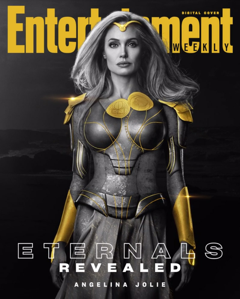 A revista americana Entertainment Weekly revelou 10 capas animadas com os personagens do filme “Eternos”, do Marvel Studios. As artes destacam os personagens do título, que são interpretados por Gemma Chan (“Capitã Marvel”), Richard Madden (“Game of Thrones”), Kumail Nanjiani (“Silicon Valley”), Lia McHugh (“American Woman”), Brian Tyree Henry (“Brinquedo Assassino”), Lauren Ridloff (“The Walking Dead”), Barry Keoghan (“Dunkirk”), Don Lee (“Invasão Zumbi”), Salma Hayak (“Dupla Explosiva”) e Angelina Jolie (“Malévola: Dona do Mal”). Além destes, Kit Harrington (“Game of Thrones”) também tem destaque no elenco como Dane Whitman, o Cavaleiro Negro. O filme tem direção da vencedora do Oscar Chloé Zhao (“Nomadland”), que também assina o roteiro final com o documentarista Ryan Firpo (“Bet Raise Fold”) e o roteirista Patrick Burleigh (“Pedro Coelho 2: O Fugitivo”). Para quem não conhece – e é muita gente, porque os quadrinhos originais estão entre os trabalhos mais obscuros de Jack Kirby – , “Eternos” são alienígenas antigos que vivem em segredo na Terra por milhares de anos. Segundo a sinopse oficial, após os eventos de “Vingadores: Ultimato”, uma tragédia inesperada faz com que eles saiam das sombras e se reúnam contra os inimigos mais antigos da humanidade, os Deviantes. A estreia está marcada para 4 de novembro no Brasil, um dia antes do lançamento nos EUA. Meet the all-powerful Ikaris. @_richardmadden and his #Eternals costars bring a race of immortals to the MCU in a thrilling new adventure. Go behind the scenes: https://t.co/2FEew28l1D Story by @devancoggan pic.twitter.com/HghTyvHoxP — Entertainment Weekly (@EW) August 18, 2021 Meet the forever young Sprite. Lia McHugh and her #Eternals costars usher in an ageless, superpowered new group dedicated to protecting humankind in the MCU. https://t.co/2FEew28l1D pic.twitter.com/iNNaetK6kF — Entertainment Weekly (@EW) August 18, 2021 Meet the speedster Makkari. @LaurenRidloff, the MCU’s first deaf hero, and her #Eternals costars introduce a powerful family of immortals in Marvel’s next big adventure. https://t.co/2FEew28l1D pic.twitter.com/3iVR3GPPiv — Entertainment Weekly (@EW) August 18, 2021 Meet strongman Gilgamesh. Don Lee and his #Eternals costars are ready to unveil the MCU’s new super team: all-powerful immortals. https://t.co/2FEew28l1D pic.twitter.com/JfEkF9Rf6l — Entertainment Weekly (@EW) August 18, 2021 Meet the warrior Thena. Angelina Jolie and her #Eternals costars introduce a new Marvel super team in a sprawling saga about immortals keeping watch over humanity. https://t.co/2FEew28l1D pic.twitter.com/yc51kwiXWn — Entertainment Weekly (@EW) August 18, 2021