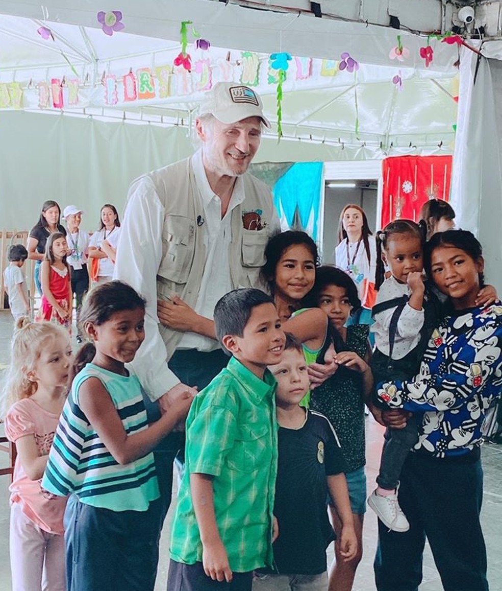 Liam Neeson visita crianças venezuelanas refugiadas em Roraima
