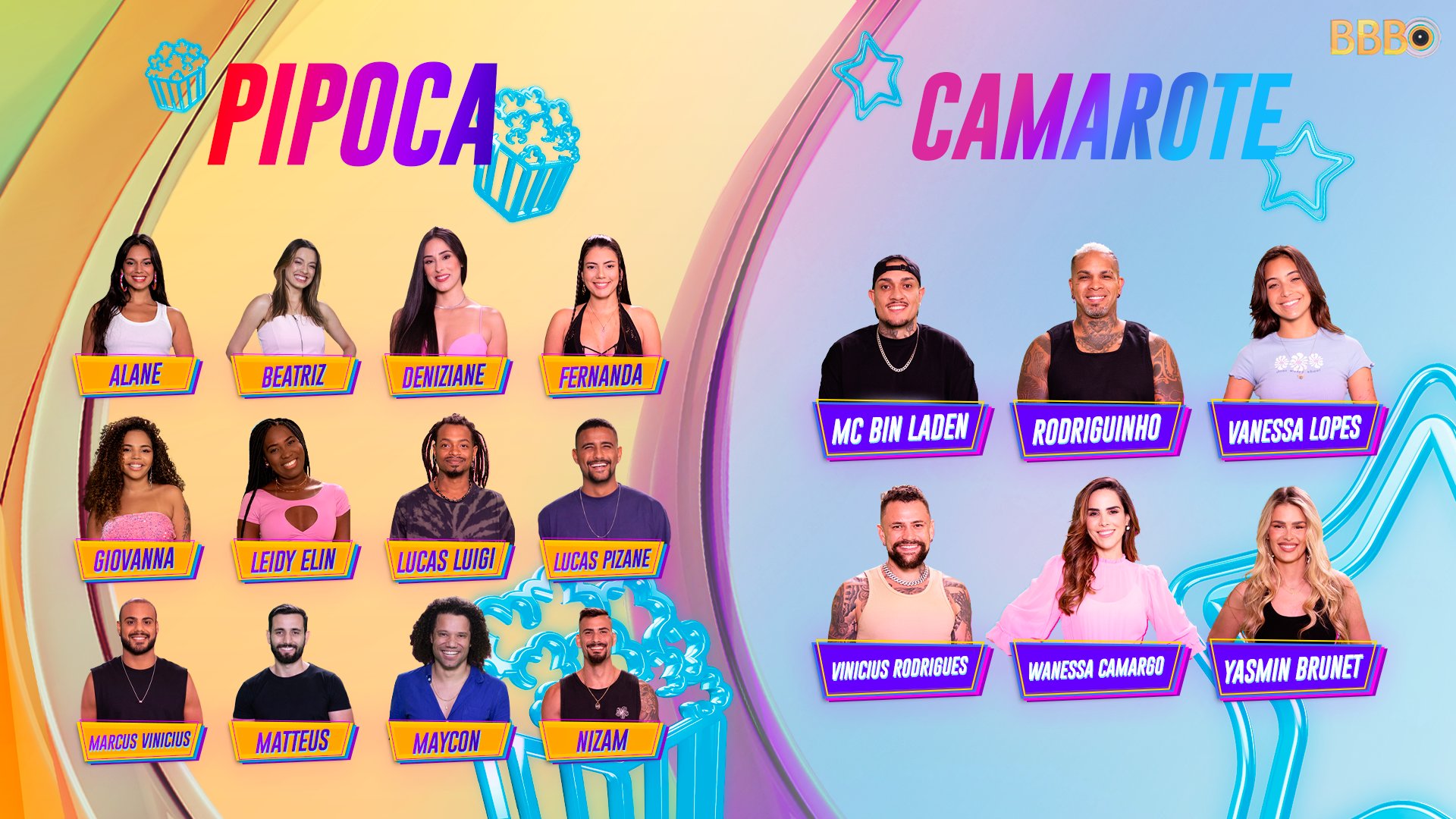 Quem esperava 426 camarotes no “BBB 24”, como brincou Boninho na quinta (4/1), recebeu apenas seis celebridades nos anúncios do Big Day desta sexta (5/1). A lista inclui os cantores Wanessa Camargo, Rodriguinho e MC Bin Laden, a influenciadora Vanessa Lopes, a modelo Yasmin Brunet e o atleta paralímpico Vinícius Rodrigues – que tem apenas 55 mil seguidores. Em compensação, a produção anunciou 12 pipocas, a maioria se dizendo em dificuldades financeiras. Em breve, os nomes de Leidy Elin, Maycon, Lucas Pizane, Deniziane, Marcus Vinicius, Beatriz, Matteus, Nizam, Giovanna, Alana, Fernanda e Lucas Luigi também devem se tornar famosos, mas por enquanto não inspiraram grandes torcidas. O Big Day revelou 18 nomes. Mas o “BBB 24” terá, ao todo, 26 participantes. Faltam 8. A Globo vai revelar mais 14 candidatos à vaga na casa mais vigiada do Brasil no domingo (7/1), durante a exibição do “Fantástico”. Não há informações sobre o perfil do novo grupo, que talvez seja o tal “Puxadinho” anunciado por Boninho em julho do ano passado – e nunca mais mencionado com a mesma ênfase. Seriam camarotes? Ainda mais pipocas? Mesclados? Ou personalidades do Kwai, que fechou uma parceria com o “BBB 24” após patrocinar “A Fazenda 14”? Nos bastidores da Record TV, tem gente comparando esse novo grupo ao Paiol de “A Fazenda”, com integrantes escolhidos pelo público para entrar no reality. O Paiol deste ano foi formado por ex-participantes de realities e, justamente, influenciadores do Kwai. O público poderá escolher dois dos 14 candidatos apresentados durante o “Fantástico”, um homem e uma mulher, para ingressarem no “BBB 24”. Os 12 que sobrarem ainda enfrentarão uma repescagem na segunda (8/1), com votação feita entre os integrantes do reality no primeiro dia do “BBB 24”. Os participantes vão escolher mais seis (três homens e três mulheres) pra se juntarem a eles no confinamento. A identidade dessas pessoas segue mantida em segredo pela Globo e o jeito vai ser esperar até domingo pela revelação. Confira os camarotes e pipocas do #BBB24! ⭐🍿 #BigDay #RedeBBB pic.twitter.com/d2BswAJjui — Big Brother Brasil (@bbb) January 6, 2024