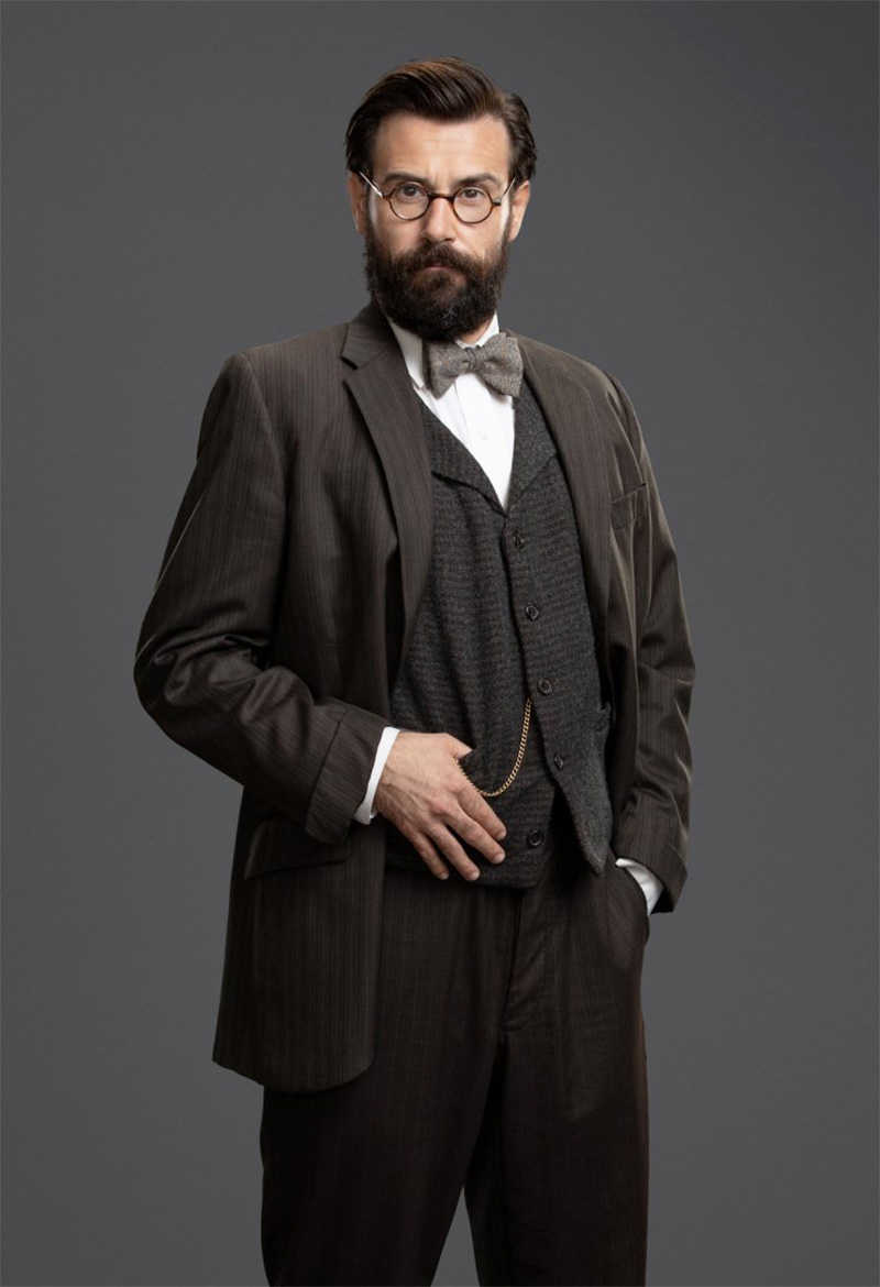 A rede americana The CW divulgou as fotos do novo visual de Matt Ryan na série “Legends of Tomorrow”. Após se despedir do papel de Constantine na temporada passada, ele voltará no episódio da próxima semana com barba, óculos e um novo nome: Dr. Gwyn Davies. Intitulado “It’s a Mad, Mad, Mad, Mad Scientist”, o episódio que vai ao ar na quarta-feira (10/11) nos EUA é o quinto da 7ª temporada. Também será o quinto a mostrar os super-heróis viajantes do tempo presos nos anos 1920 e perseguidos por robôs com a aparência do fundador do FBI J. Edgar Hoover. Sua esperança de voltar ao futuro (isto é, 2021) é justamente encontrar o Dr. Davies, um cientista dedicado a estudar viagens no tempo. Além de Ryan, a série é estrelada por Caity Lotz como Sara Lance, Tala Ashe como Zari Tarazi, Jes Macallan como Ava Sharpe, Olivia Swann como Astra Logue, Adam Tsekhman como Gary Green, Shayan Sobhian como Behrad Tarazi, Lisseth Chavez como Esperanza “Spooner” Cruz, Nick Zano como Nate Heywood e Amy Louise Pemberton como Gideon. “Legends of Tomorrow” é exibida no Brasil pelo canal pago Warner.
