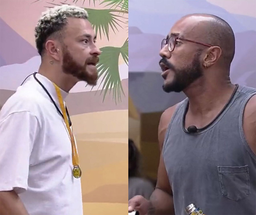 A Festa do Líder do “BBB 23”, que aconteceu na noite de quarta-feira (1/3), ficou marcada por um bate-boca entre os aliados MC Guimê e Cara de Sapato. A discussão começou por causa de atitudes das primeiras semanas de jogo. Durante o evento grego de Bruna Griphao, o cantor resolveu expor que se sentiu magoado pelo lutador após presenciar uma aproximação com Gustavo “Cowboy”, que era o seu principal inimigo. “Chegou um momento em que você acreditou mais nele do que em mim”, lembrou Guimê. “Eu gosto muito de você, te amo. Mas quando você teve a opção de escolher Guime ou Cowboy e Key – com todo o respeito, desculpa se eu estiver equivocado – , você escolheu Cowboy e Key, que eram meus maiores adversários e me colocaram no Paredão”, afirmou. Guimê acrescentou que a atriz também viu a aproximação de Sapato com o grupo rival. No entanto, Bruna tentou desconversar e disse que apenas presenciou o lutador numa conversa. Sapato, por sua vez, se exaltou com a situação e perdeu a cabeça. “Você tá mentindo. Eu não vou falar mais nada porque você tá mentindo. Você vai ver depois”, disse o lutador sobre o VAR do “BBB”. Momentos depois, o lutador entrou na casa para tomar um banho e esfriar a cabeça. No entanto, Guimê foi atrás e reaqueceu a treta dentro do banheiro. “Eu não sou mentiroso, você chegou e nóis tava trocando essas ideia. Eu não ia meter o louco”, disse o cantor. Guimê também explicou que Sapato entrou na conversa quando ele estava falando de jogo com Ricardo “Alface”. “Posso ser sincero contigo, do meu coração? Me machucou, quando eu estava correndo contra a opinião de todo mundo, fazendo um corre só meu”, argumentou. O lutador rebateu e mencionou a prioridade de outros confinados. “Se [Ricardo Alface] tiver que escolher entre eu e a Sarinha agora, ele escolhe a Sarinha, e tá tudo bem”, disse. “Qual é a maldade disso? É isso que eu não tô enxergando.” Bruna Griphao, então, decidiu intervir na discussão, afirmando que Cara de Sapato passou por momentos de dúvidas dentro do jogo. A sister ainda reforçou que o lutador entendeu que o Gustavo “Cowboy” não o priorizava da mesma forma que o grupo Deserto. Numa alfinetada, Guimê declarou que os membros do Deserto são sua prioridade. “Quando eu penso em análise do nosso quarto, dos nossos aliados, eu queria, de certa forma, ter uma outra percepção. Mas o que me traz à tona são coisas que aconteceram no passado”, disse ele, lembrando que Sapato abriu mão das parcerias para sair do grupo e se aproximar de Cowboy e Key. No auge da madrugada, as sisters Sarah Aline, Key Alves e Marvvila decidiram se esconder atrás da porta do quarto Aquário/Fundo do Mar para escutar a conversa dos brothers. Elas não sabiam o que estavam acontecendo, até então. “Pelo o que eu entendi, foi entre o Guimê e o Sapato inicialmente. O Guimê deve ter falado que não estava se sentindo muito protegido, prioridade”, contou Sarah para as colegas. Momentos depois, os aliados decidiram fazer as pazes numa conversa na cozinha. Na ocasião, o funkeiro lamentou a confusão com seu parceiro. “Sei que te desgastou, desgastou eu, não precisava”, disse Guimê. “São coisas do futuro, deixa fluir. Já que chegou nesse resumo foi um bagulho que guardei no coração, não só contigo, mas com você principalmente. É um bagulho que sentia porque, de fato, estava vendo a hora, se tivesse bandeirinhas da torcida, do chapéu e Guimê. A torcida do chapéu estava levantada. Pô, são as pessoas que gosto, amo e curto aqui dentro. Fiquei triste [ao ver Sapato distante]”, acrescentou. Em seguida, Ricardo “Alface” destacou que Guimê se incomodou até com um torpedo enviado por Sapato para Gustavo “Cowboy”, fazendo a atriz Bruna Griphao questionar o signo do funkeiro. “Você é ciumento. Você tem que entender que, nesse momento do game, vocês construíram uma relação pós isso, muito mais forte agora. Vocês construíram essa relação próxima, de ‘eu te amo’, depois disso tudo acontecer. Você tá lidando com uma situação hipotética”, disse Bruna, enquanto os aliados trocavam um abraço. gente, a Marvvila e a Sarah ouvindo a discussão do guimê com sapato😵 #BBB23 pic.twitter.com/PcPvzvj4Ru — dani (@danilirx) March 2, 2023 Bruna tentando explicar e acalmar a situação entre Sapato e Guimê. Vídeo: Reprodução/Globoplay#TeamGriphao #BBB23 pic.twitter.com/W6UhKRnktH — Bruna Griphao 🦏 (@BrunaGriphaoo) March 2, 2023 e vamos de VAR: aparentemente, a discussão começou com a Bruna contando que Sapato, Gustavo e Cristian criariam outro grupo (???) (obg pelo vídeo @piauivaidominar )pic.twitter.com/WajKYdYFfB — ellen | 🪢 (@edevrieso) March 2, 2023