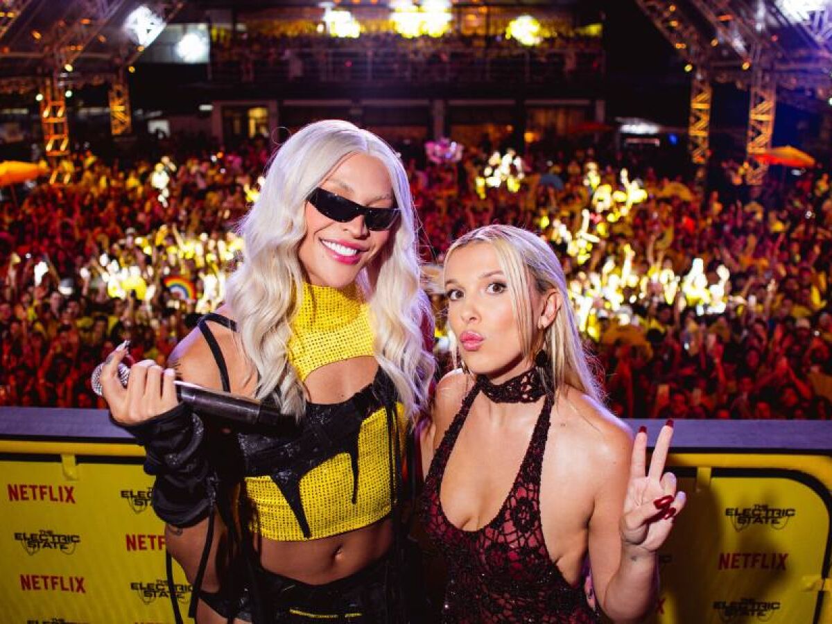 Millie Bobby Brown sobe em trio elétrico com Pabllo Vittar em São Paulo
