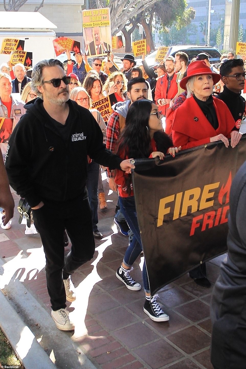 O ator Joaquin Phoenix, vencedor do recente Globo de Ouro 2020 por “Coringa”, foi preso nesta sexta (10/1) ao participar de mais um protesto organizado por Jane Fonda contra a mudança climática na frente do Capitólio, em Washington (EUA). Ele terá a companhia do ator Martin Sheen, que trabalha com Fonda na série “Grace and Frankie”, também detido na manifestação. Joaquin discursou para os manifestantes — que incluíam ainda as atrizes Maggie Gyllenhaal e Susan Sarandon — e aproveitou para chamar atenção para os malefícios causados pela agropecuária para o meio ambiente. “Eu não tenho nada preparado, mas acho que poucos falam nesses protestos sobre a indústria de carne e laticínios”, afirmou o ator, sendo aplaudido. “Às vezes nos perguntamos o que podemos fazer nesta luta contra a mudança climática, e você pode mudar já, hoje ou amanhã o que consome”, disse. Todos os manifestantes foram alertados pela polícia de que seriam presos caso não cooperarem com as autoridades e começassem a se dispersar. A multidão de hoje foi uma das maiores desde que Fonda começou seus protestos. Even the Joker believes in climate change! Joaquin Phoenix calls out the meat and dairy industry for being the 3rd leading cause of the climate crisis #FireDrillFriday pic.twitter.com/NpxdC7aU38 — Fire Drill Fridays (@FireDrillFriday) January 10, 2020