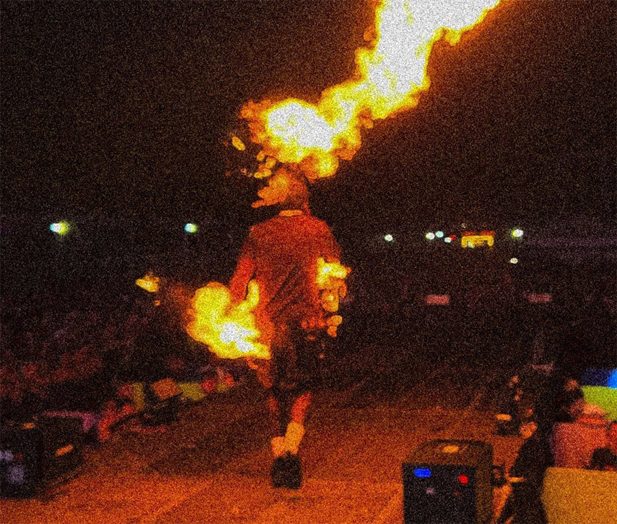 Djonga levou um susto no palco durante um show realizado no domingo (19/11) em Cabo Frio, no Rio de Janeiro. Acontece que a bermuda que o rapper estava usando pegou fogo em decorrência de um erro pirotécnico. Conforme visto nas imagens da apresentação, Djonga não se deu conta de que foi atingido por um jato de fogo enquanto atravessava a passarela da atração. O artista acabou sendo avisado pelos fãs que estava pegando fogo e decidiu arrancar a bermuda ainda no palco. “Vou ter que cantar assim, será? Desse jeitão?”, ele brincou depois do susto. No Instagram, o rapper se pronunciou sobre o incidente pirotécnico sem perder a leveza: “Ontem foi por pouco, de verdade. E se vocês repararem quase pegou na minha cabeça o outro jato de fogo. Perna tá queimada, mas tô cuidando. Agora imagina se o mano não gosta de usar cueca? Que situação ia ser!”, escreveu nos Stories. Djonga também publicou um vídeo do momento em que sua bermuda começou a pegar fogo durante a apresentação. “Tentaram matar o mano de novo, mas o mano resiste. Obrigado, papai do céu e os orixás, tô bem. E aquelas coisas aqui ainda dão pra usar”, ele ainda brincou na postagem. Ver essa foto no Instagram Uma publicação compartilhada por @djongador