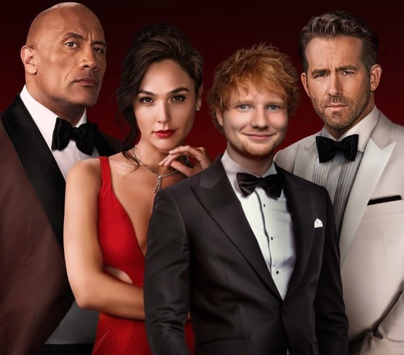 O cantor Ed Sheeran postou a “versão final” do pôster de “Alerta Vermelho”, filme lançado na sexta (12/11), que até então mantinha a presença do cantor em segredo. Ao lado do cartaz, que destaca sua participação ao lado de Ryan Reynolds, Gal Gadot e Dwayne “The Rock” Johnson, ele brinca ao se referir ao trabalho como sua performance vencedora do Oscar. O pôster também rebatiza a produção. “Red Notice”, o título em inglês, vira “Ed Notice”. Mas a participação de Sheeran é pequena, numa cena em que ele canta e briga com a polícia. Mesmo assim, gerou vários comentários no Twitter durante o fim de semana, acabando com qualquer chance de surpresa para quem não assistiu ao filme nas primeiras horas em que foi disponibilizado. Também no fim de semana, os astros Ryan Reynolds, Gal Gadot e Dwayne Johnson foram às redes sociais comemorar a informação da Netflix de que “Alerta Vermelho” registrou a melhor estreia de um filme original da plataforma em todos os tempos. Escrito e dirigido por Rawson Marshall Thurber (“Família do Bagulho”), o longa é uma mescla de ação e comédia, com muitas explosões, pancadaria e piadinhas, ao mostrar “o melhor investigador do FBI” (Johnson) alistando “o segundo ladrão de arte mais procurado do mundo” (Reynolds) para prender “a ladra de arte mais procurada do mundo” (Gadot). Catch my Oscar winning performance in Red Notice, out everywhere today on Netflix Repost @ teddysphotos on Instagram pic.twitter.com/pmfFBU9xDG — Ed Sheeran HQ (@edsheeran) November 12, 2021