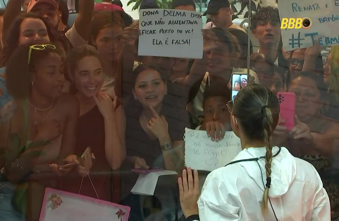 Renata Saldanha recebe informações externas na “Vitrine do Seu Fifi” do BBB 25