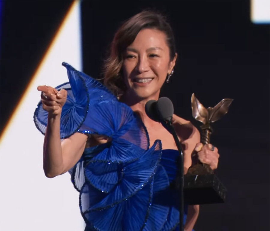 O Sindicato dos Atores dos Estados Unidos (SAG, na sigla em inglês) consagrou “Tudo Em Todo Lugar ao Mesmo Tempo” com quatro troféus em sua premiação anual, o SAG Awards. Trata-se de um feito recordista. Ate então, nunca antes um filme ou série tinha conquistado tantas vitórias no evento das estrelas de Hollywood. Exibida pelo YouTube da Netflix, após o final do contrato com a TNT, a cerimônia realizada na noite deste domingo (26/2) no Fairmont Century Plaza, em Los Angeles, premiou Michelle Yeoh, a protagonista de “Tudo Em Todo Lugar ao Mesmo Tempo”, além de Ke Huy Quan e Jamie-Lee Curtis como os Melhores Coadjuvantes. Para completar, os astros de “Tudo Em Todo Lugar ao Mesmo Tempo” também foram eleitos o Melhor Elenco, e transformaram a premiação numa homenagem a James Hong, que na quarta passada (22/2) completou 94 anos. Brendan Fraser, astro de “A Baleia”, completou a premiação cinematográfica como Melhor Ator. Todos os discursos foram emocionantes, mas Ke Huy Quan e Michelle Yeoh chamaram a atenção para o feito histórico de suas premiações, como primeiros asiáticos a vencerem os troféus de suas categorias. “Acho que se eu falar, meu coração vai explodir”, disse Yeoh ao subir ao palco. “Isso é para todas as garotas que se parecem comigo”, ela proclamou. Geralmente, os premiados pelo Sindicato dos Atores também vencem o Oscar de suas categorias, já que a maioria dos eleitores das duas premiações é formada pelas mesmas pessoas. No ano passado, a coincidência foi de 100%, com vitórias de Will Smith (“King Richard: Criando Campeãs”), Jessica Chastain (“Os Olhos de Tammy Faye”), Troy Kotsur (“No Ritmo do Coração”) e Ariana DeBose (“Amor, Sublime Amor”), sem esquecer que “No Ritmo do Coração” venceu como Melhor Elenco antes de levar o Oscar de Melhor Filme. Nas categorias televisivas, os destaques ficaram com Jason Bateman (“Ozark”) e Jennifer Coolidge (“The White Lotus”) em Drama, Jeremy Allen White (“O Urso”) e Jean Smart (“Hacks”) em Comédia, Sam Elliott (“1883”) e Jessica Chastain (“George & Tammy”) em Minissérie, e as séries “The White Lotus” e “Abbott Elementary”, vencedoras do troféu Melhor Elenco de Drama e Comédia, respectivamente. Confira abaixo o discurso emocionado de Michelle Yeoh, com direito a palavrão, e logo a seguir a lista completa dos vencedores. Grab your tissues and prepare to be moved by the ICONIC Michelle Yeoh! #SAGAwards pic.twitter.com/ZPHoOkHb7u — SAG Awards® (@SAGawards) February 27, 2023 Melhor Elenco de Filme “Tudo Em Todo Lugar ao Mesmo Tempo” Melhor Ator Brendan Fraser, “A Baleia” Melhor Atriz Michelle Yeoh, “Tudo Em Todo Lugar ao Mesmo Tempo” Melhor Ator Coadjuvante Ke Huy Quan, “Tudo Em Todo Lugar ao Mesmo Tempo” Melhor Atriz Coadjuvante Jamie-Lee Curtis, “Tudo Em Todo Lugar ao Mesmo Tempo” Melhores Dublês em Filme “Top Gun: Maverick” Melhor Elenco em Série de Drama “The White Lotus” Melhor Ator em Série de Drama Jason Bateman, “Ozark” Melhor Atriz em Série de Drama Jennifer Coolidge, “The White Lotus” Melhor Elenco em Série de Comédia “Abbott Elementary” Melhor Ator em Série de Comédia Jeremy Allen White, “O Urso” Melhor Atriz em Série de Comédia Jean Smart, “Hacks” Melhor Ator em Telefilme ou Minissérie Sam Elliott, “1883” Melhor Atriz em Telefilme ou Minissérie Jessica Chastain, “George & Tammy” Melhor Performance de Dublês em Série “Stranger Things” Ver essa foto no Instagram Uma publicação compartilhada por SAG Awards® (@sagawards)