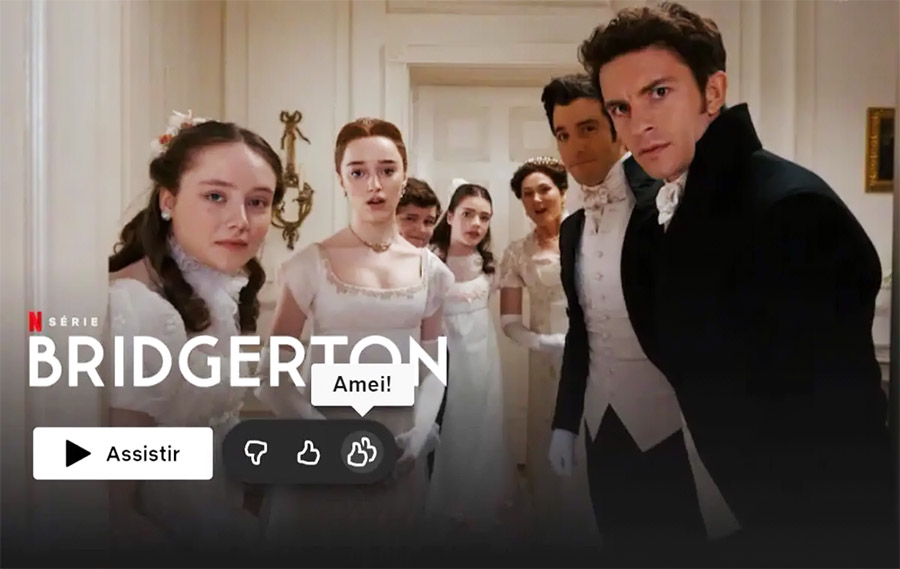 A Netflix alterou a forma do assinante avaliar suas produções, acrescentando um novo botão de curtir. Além dos polegares para baixo (Não é para mim) e para cima (Gostei), a plataforma passou a trazer uma nova opção de avaliação com dois polegares para cima, que representa “Amei!”. “Pense na opção ‘Amei!’ como um jeito de influenciar ainda mais as suas recomendações de filmes e séries”, disse Christine Doig-Cardet, diretora de inovação de produtos da empresa, em nota. A ideia é oferecer ao assinante uma diferenciação entre o que curtiu e o que realmente curtiu muito. “A experiência nos mostrou que a classificação vai além de simplesmente gostar ou não. Esse novo jeito para você nos dizer que realmente curtiu algum título proporcionará recomendações ainda mais específicas para o seu perfil”, completou a executiva. A classificação dos polegares binários estava em vigor desde 2017, substituindo o formato original de notas por estrelas.