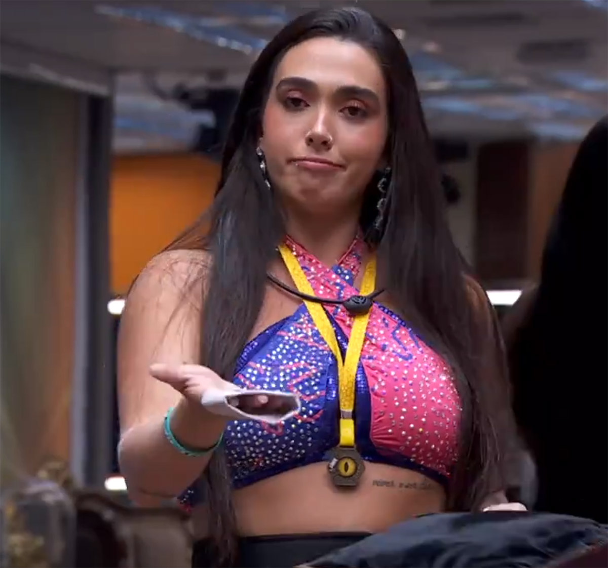 Primeiro gesto da cantora na festa do BBB 24 foi pedido de abraço coletivo, numa reação às críticas por contatos físicos com famosos no reality