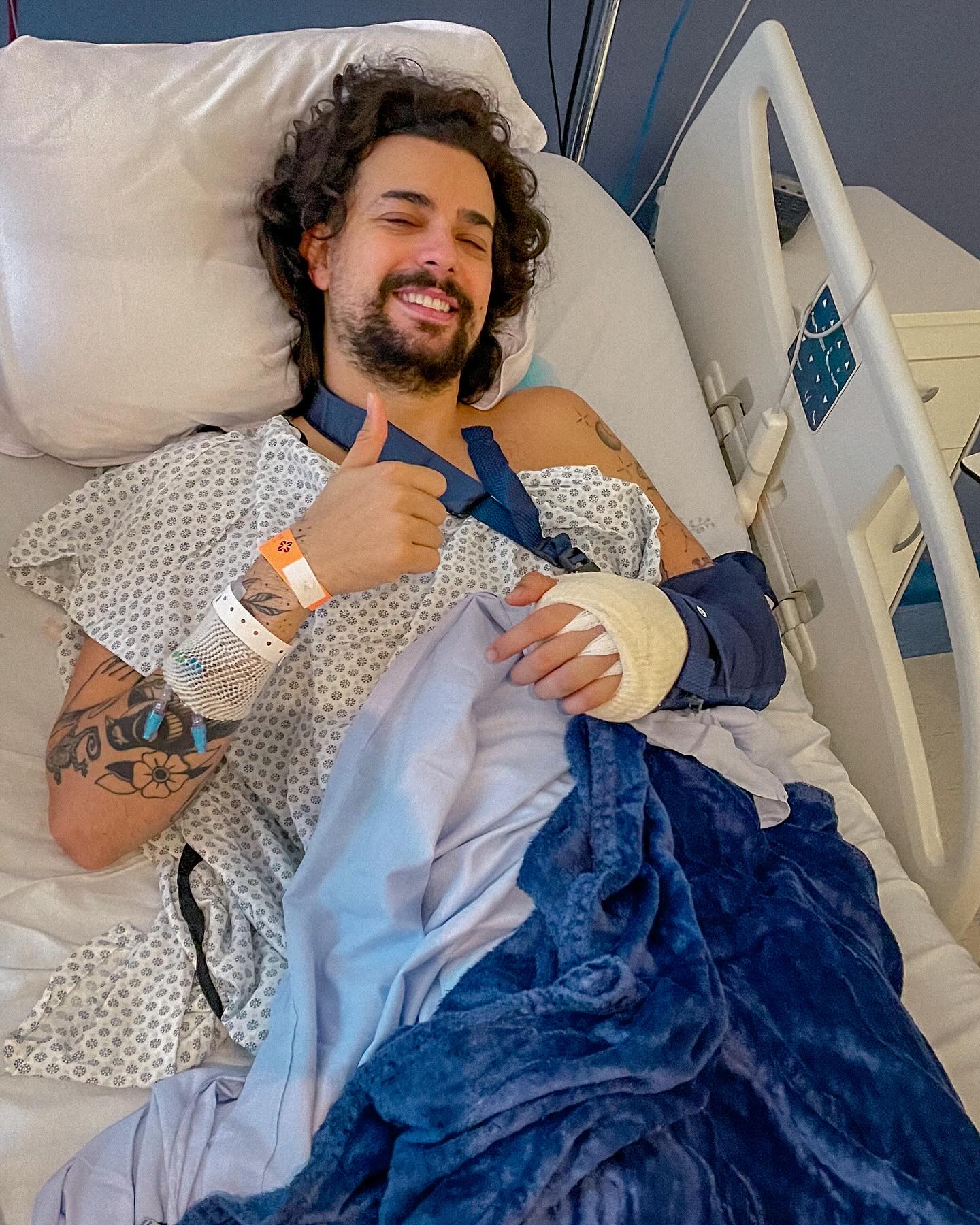 O artista informou que quebrou um osso do dedo anelar da mão esquerda ao cair de uma escada dentro de casa