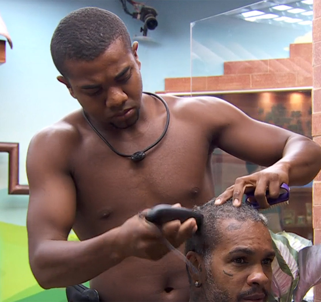 BBB | Davi raspa cabelo de Rodriguinho e barba de Matteus