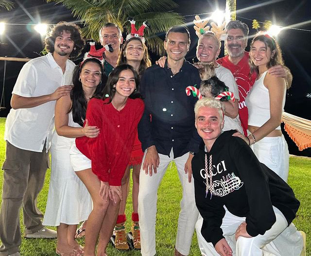 Bruna Marquezine convidou o namorado americano Xolo Maridueña para passar o Natal com sua família em Angra dos Reis. Eles também comemoram a data juntos com a família da apresentadora Xuxa Meneghel – Bruna e Sasha, filha de Xuxa, são amigas de infância. Quem revelou a presença de Xolo na ceia foi o cabeleireiro Daniel Fortunato, responsável por platinar o cabelo de João Figueiredo, marido de Sasha, na noite feliz. “2022, outro Natal de amor. Muito grato de estar cercado por tanto amor”, escreveu o profissional ao compartilhar a foto da turma no Instagram, em que o ator, mais conhecido por seu papel em “Cobra Kai”, apareceu bem íntimo da mãe de Bruna, Neide. O novo casal se conheceu durante as filmagens do longa do super-herói “Besouro Azul”, em que interpretam par romântico, e não se desgrudaram desde então. Xolo já virou praticamente brasileiro, de tanto visitar o país na companhia de Bruna. E ela também tem aparecido em tapetes vermelhos de Hollywood na companhia do par. Apesar do namoro visivelmente assumido, eles nunca comentaram a relação em público. Ver essa foto no Instagram Uma publicação compartilhada por Daniel FORTUNATO (@daniel_fortunato)