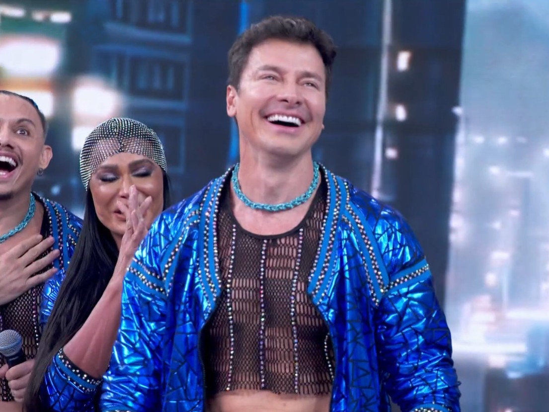Rodrigo Faro dança de cropped e se emociona com surpresa da esposa no “Domingão”