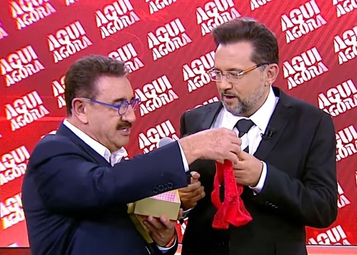 Geraldo Luis veste calcinha vermelha ao vivo no “Aqui Agora” e gera críticas nas redes