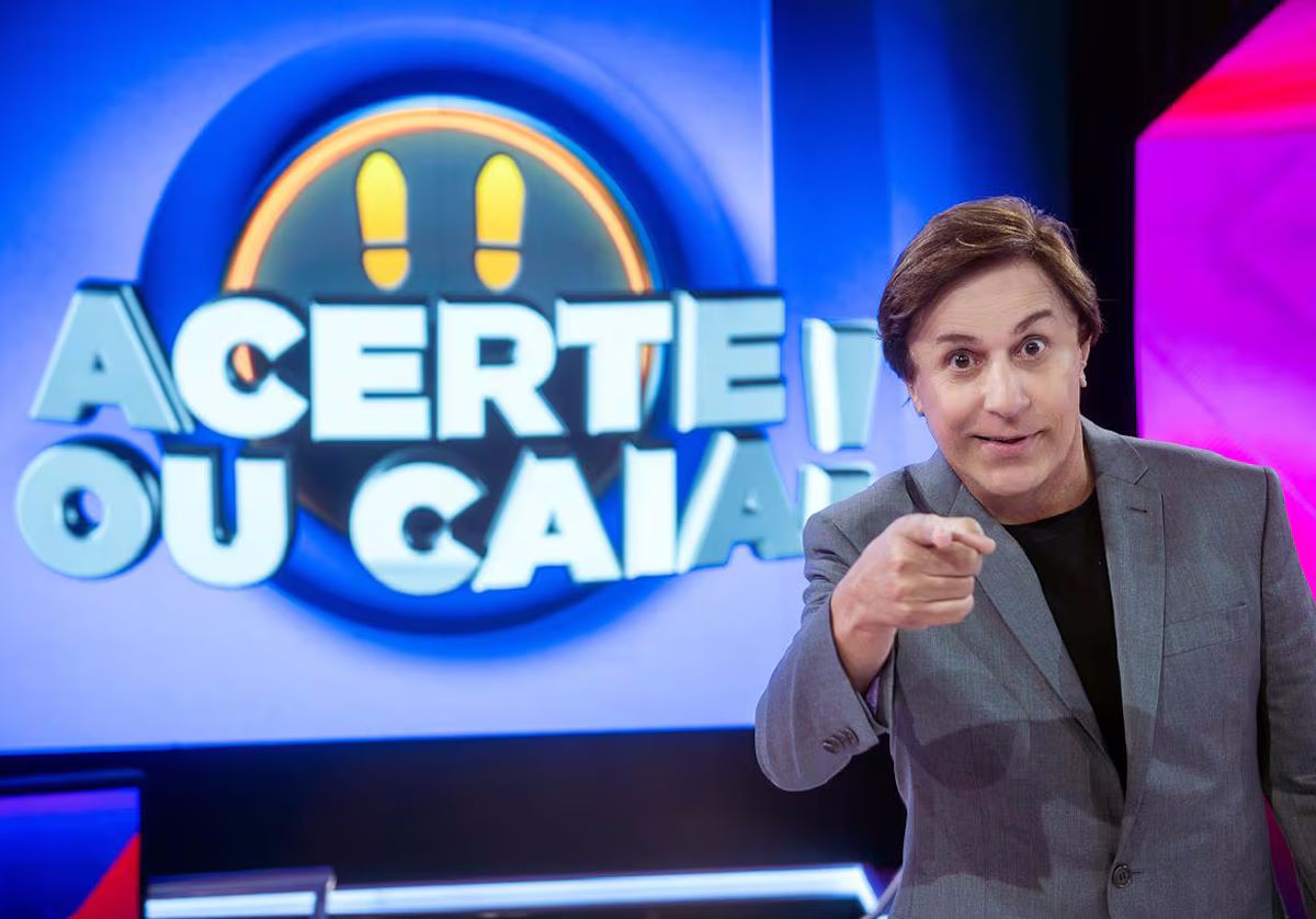 Humorista fratura perna no alçapão do “Acerte ou Caia”, durante gravação na Record