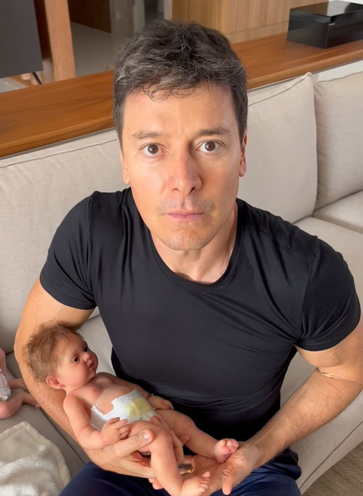 Desempregado, Rodrigo Faro cuida de bebês reborn e vira alvo de ironia